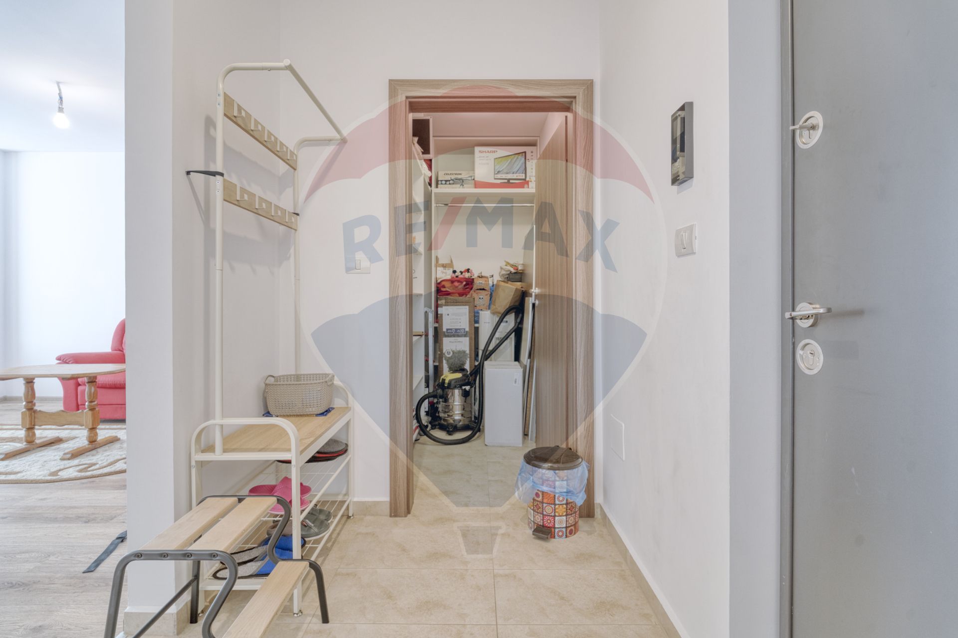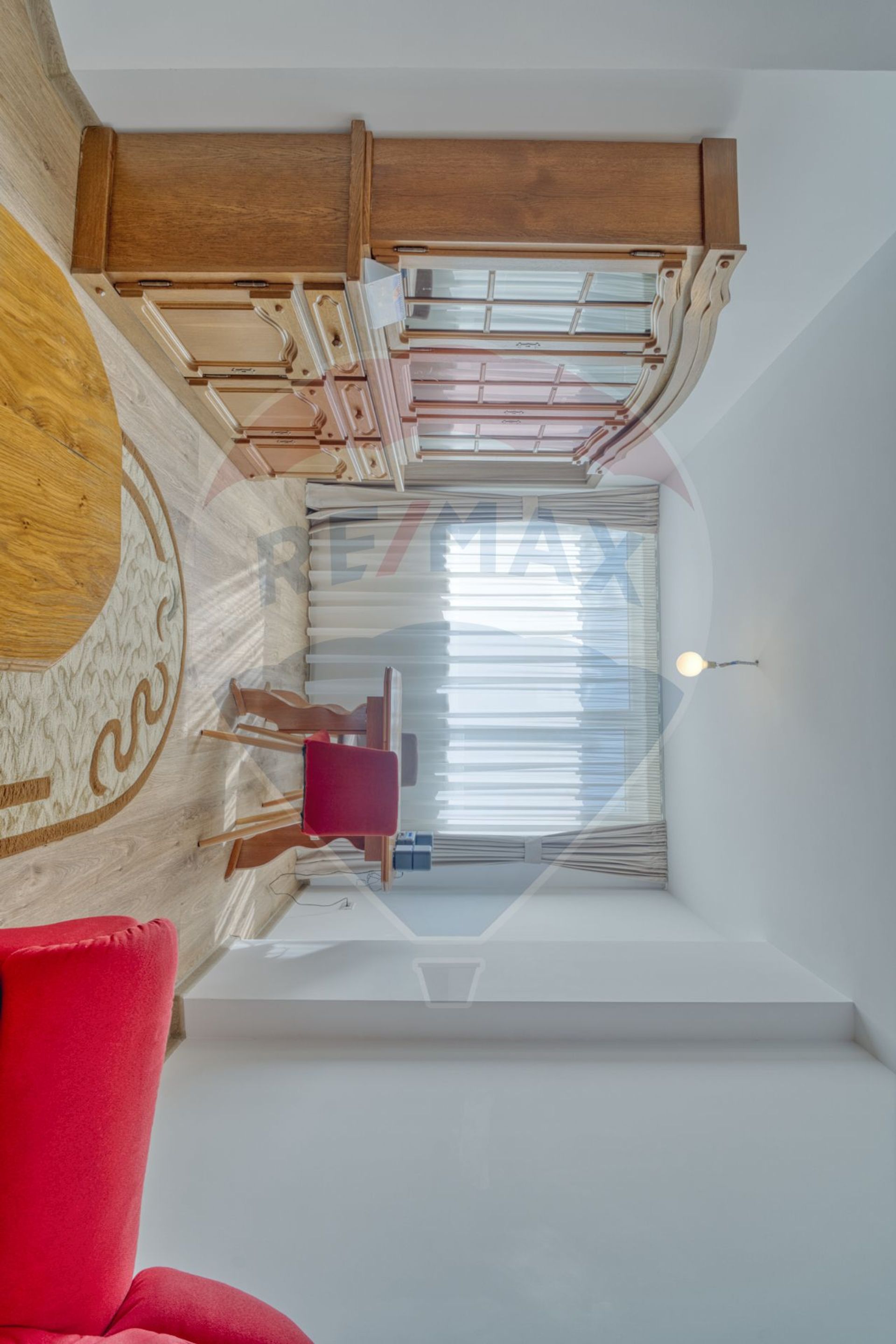 Apartamentul se va vinde doar cu mobila de bucătărie făcută la comandă, care include și electrocasnicele plus frigider, perdele, jaluzele și rafturile din dressing.
