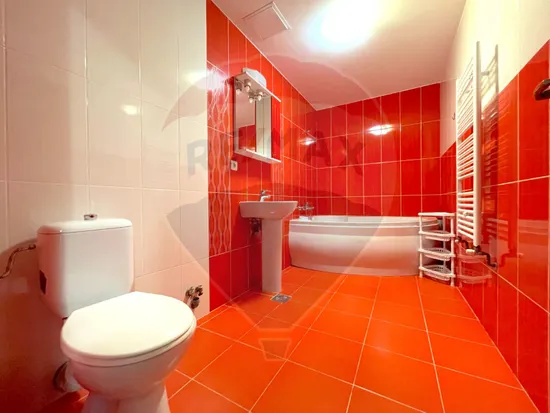Baia apartamentului este de 6,66 mp, spațioasă, prevăzută cu cadă de duș.