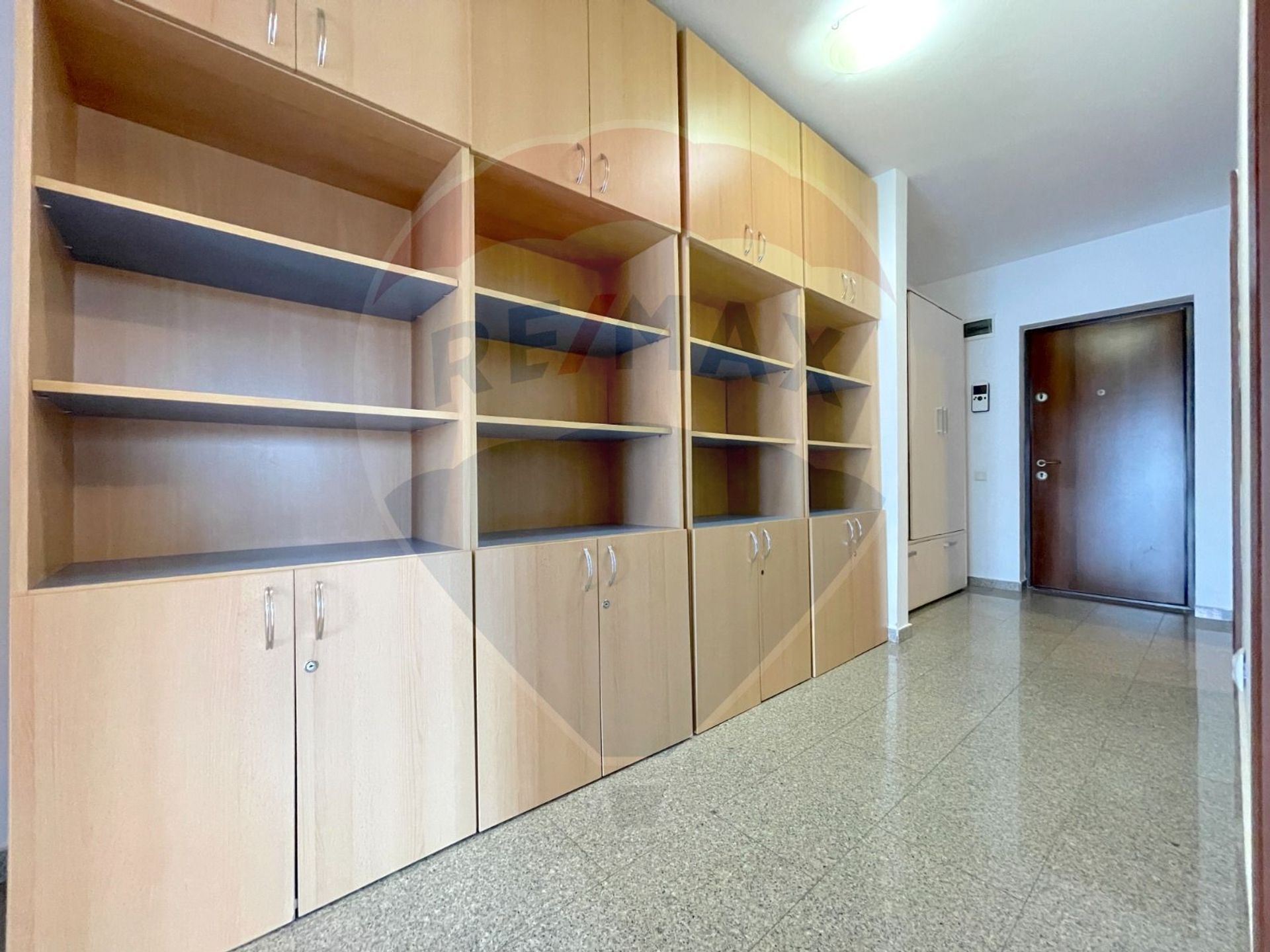 La intrarea în apartament regăsim un hol generos de 9,75 mp, în care este amplasat un dulap pentru depozitare.