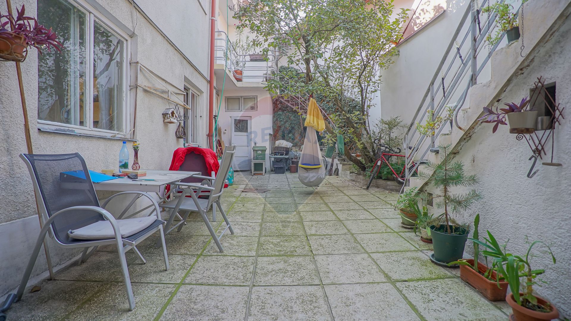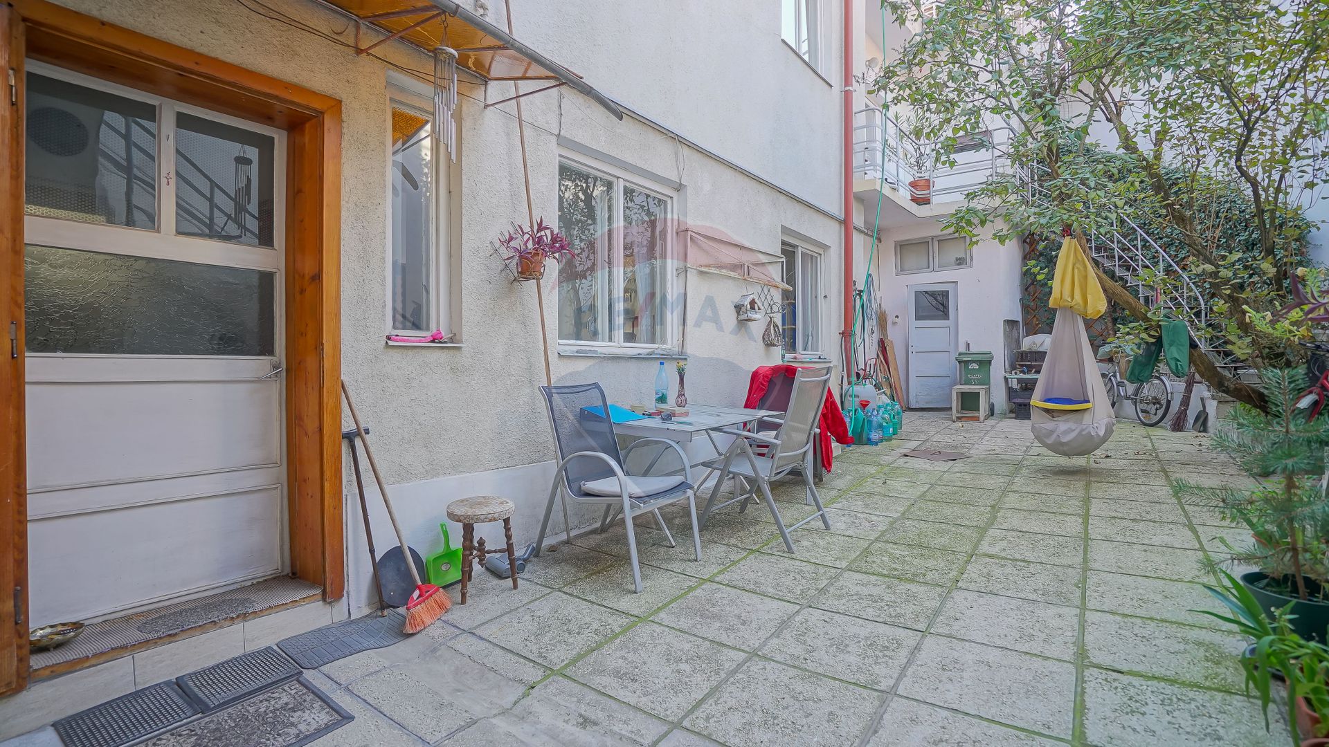 Curtea interioară este betonată și permite accesul auto, dar și transformarea într-un spațiu verde și intim, departe de tumultul orașului. De asemenea, vila beneficiază și de locuri de parcare concesionate, în fața casei.