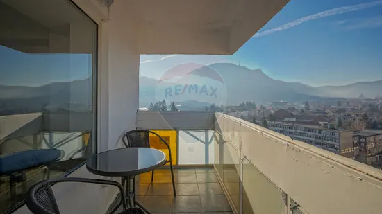 Atuul acestui apartament este livingul deschis si foarte spatios, in care te poti simti ca acasa cu toata familia, si unul din dormitoare din balconul caruia avem o panorama unica asupra orasului Brasov, lucru destul de rar intilnit in zona Centrului Civic.