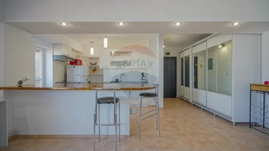 Bucataria este open space fiind mobilata si utilata cu aragaz, masina de spalat vase, frigider, hota, cuptor, cafetiera.
