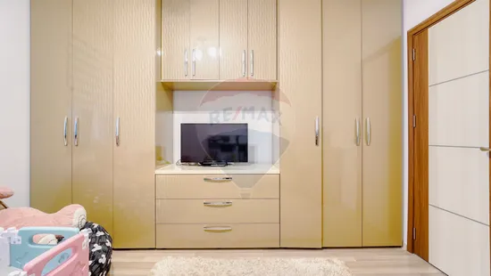 Apartamentul mai dispune de următoarele beneficii: Supraveghere video/audio, iluminare LED în tot apartamentul, termostat Google home.
