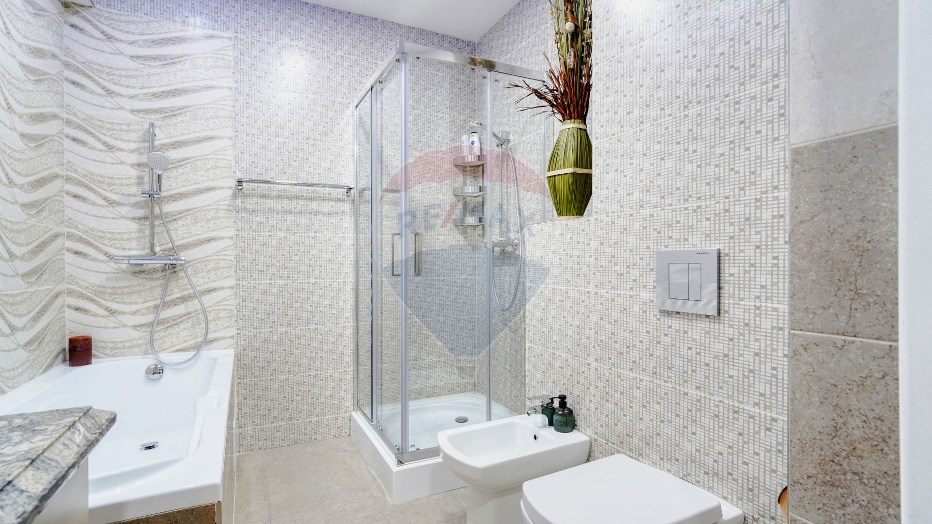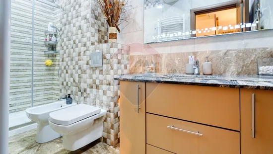 Ambele băi sunt prevăzute cu blat de Granit, oglinzi cu led și baterii GROHE. Una dintre băi are cadă dar și cabină de duș walk-in.