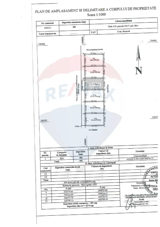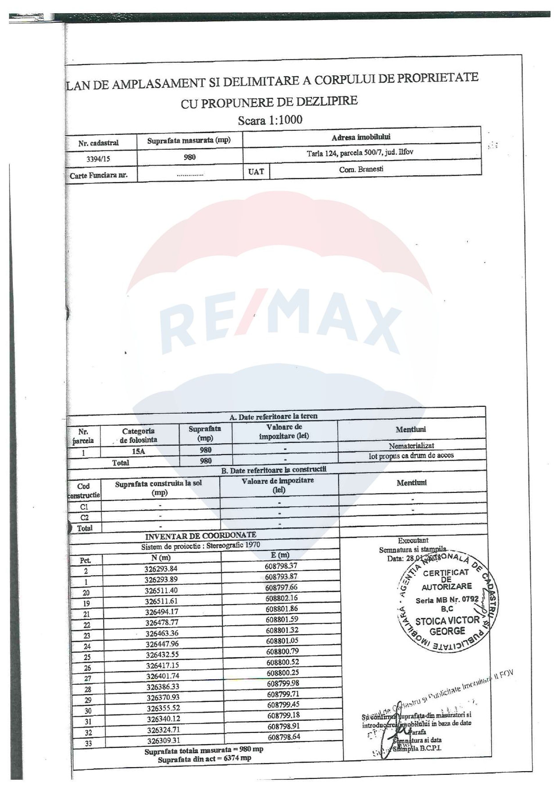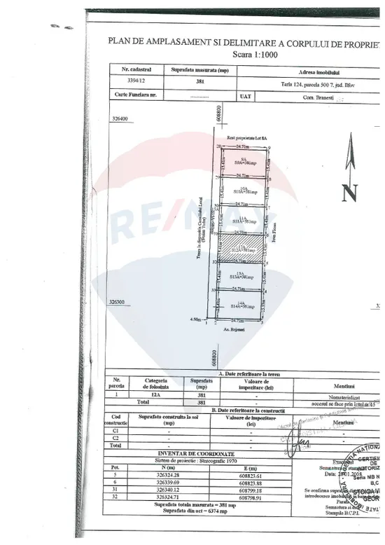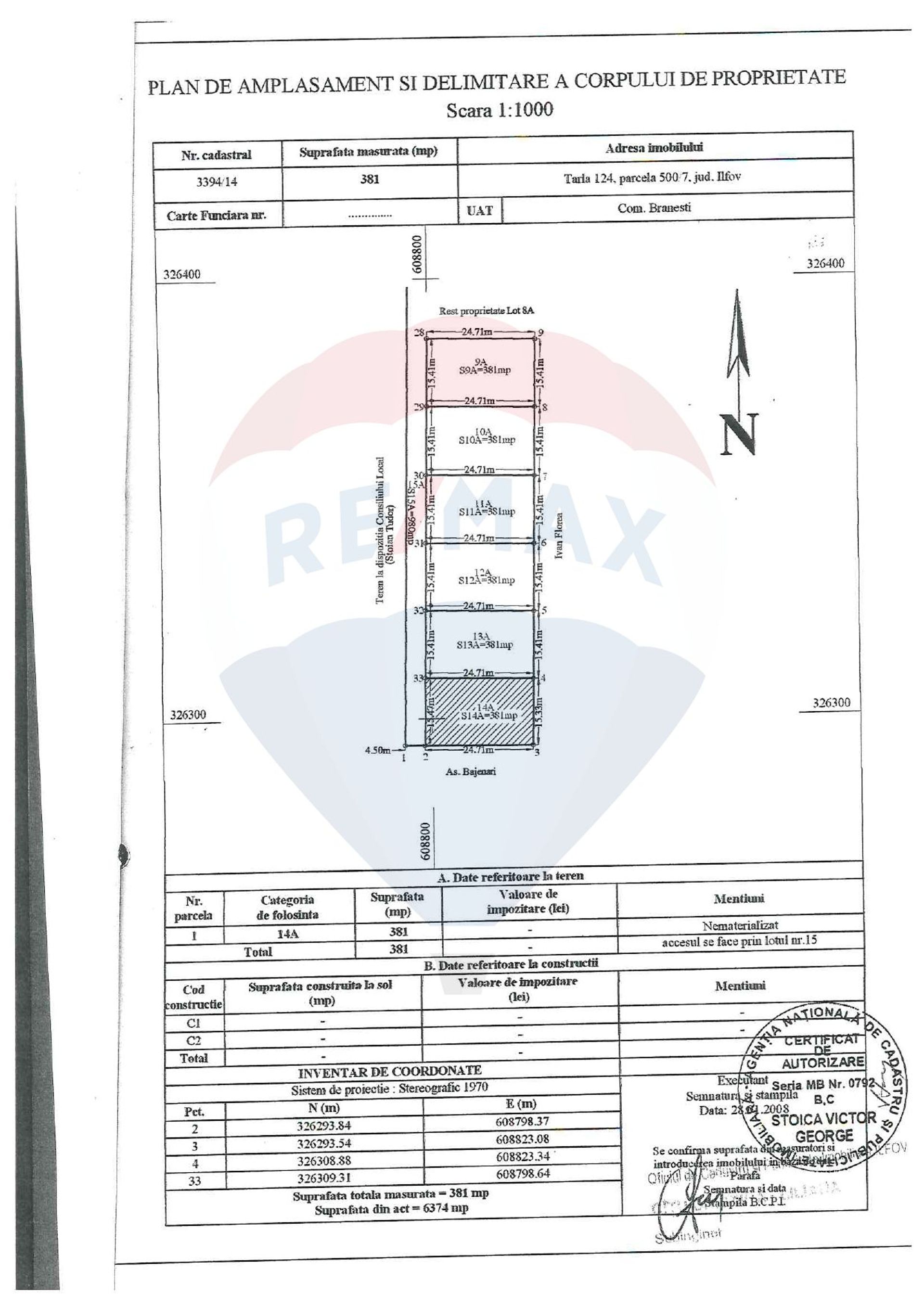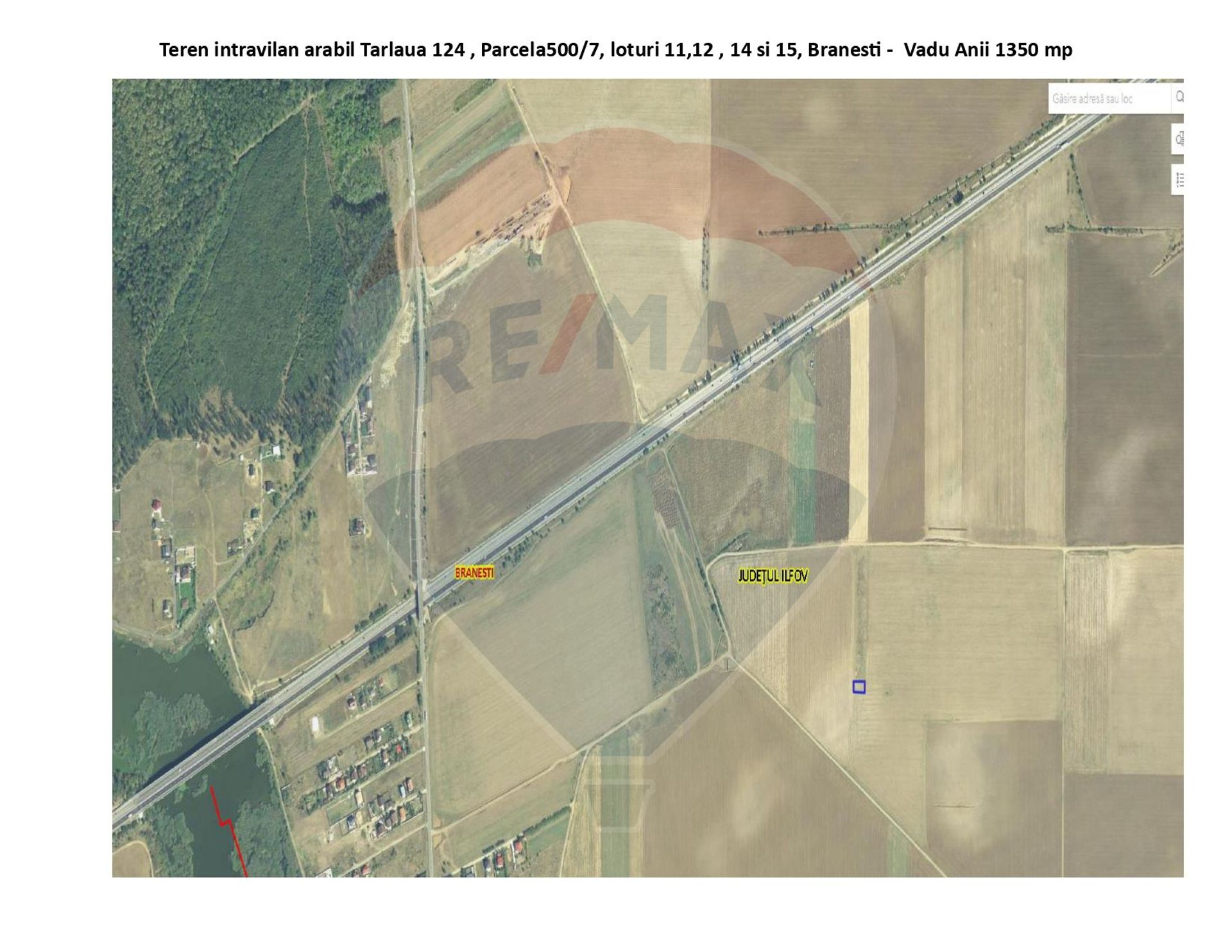 Va oferim spre vanzare un teren intravilan situat in comuna Branesti, satul Vadu Anei, care se afla in Tarlaua 124 parcela 500/7 cu loturile 11, 12 si 14, in suprafata de 450 mp fiecare, la 300 m distanta de autostrada A2, sensul de mers spre Constanta. Drumul de servitute, lotul 15 are o suprafata totala de 980 mp, iar cota indiviza pentru fiecare lot este de 69 mp.