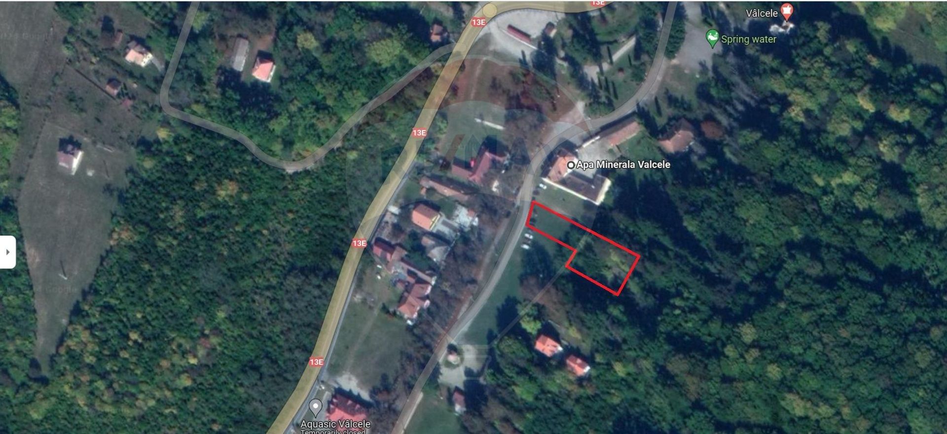 Suprafață terenului este de 1313 mp și se află între clădirea Apă Minerală Vâlcele; promenadă și parcul central. Terenul are deschidere la 2 drumuri, str. Băii și un drum de servitute pentru alte două imobile. În apropierea terenul se află linia de înalta tensiune, astfel curentul se poate trage foarte ușor pe proprietate.