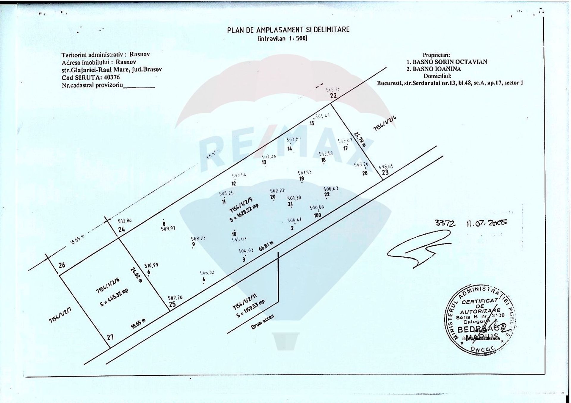 Compania RE/MAX Central Brașov vă propune în vederea achiziției un teren intravilan în suprafață de 1628 mp situat în Râșnov, zona Glăjerie, la app 195 m de strada principală asfaltată, zonă destinată pentru construcții case de vacanță, vile și pensiuni.