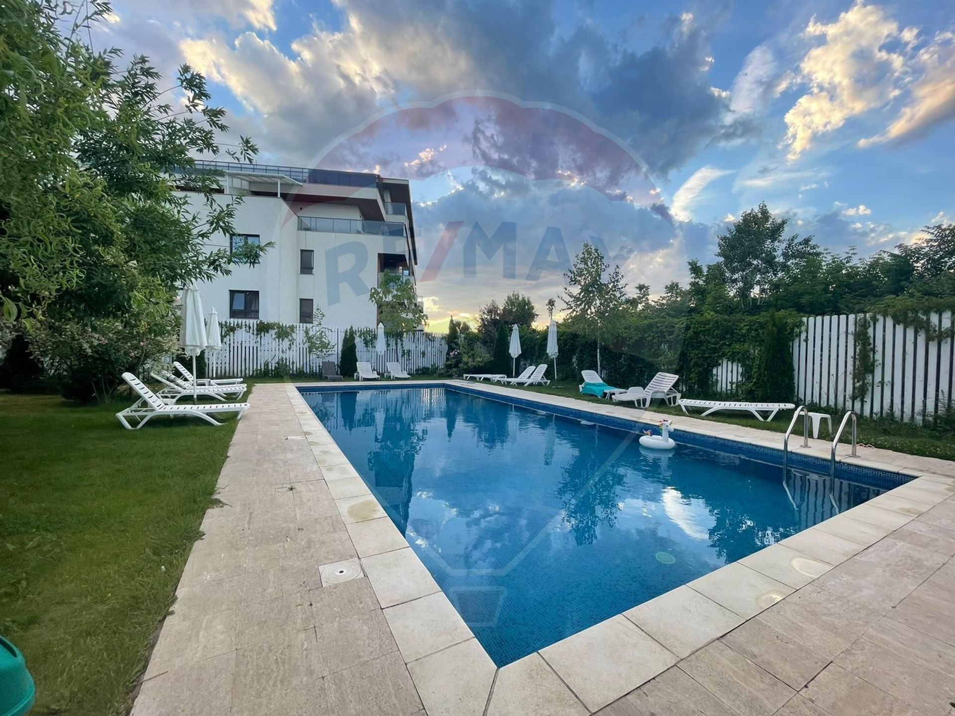 Complexul beneficiaza de asemenea de piscina exterioara ce deserveste intregul complex, precum si de multiple locuri de relaxare, un loc de joaca si diverse spatii verzi.