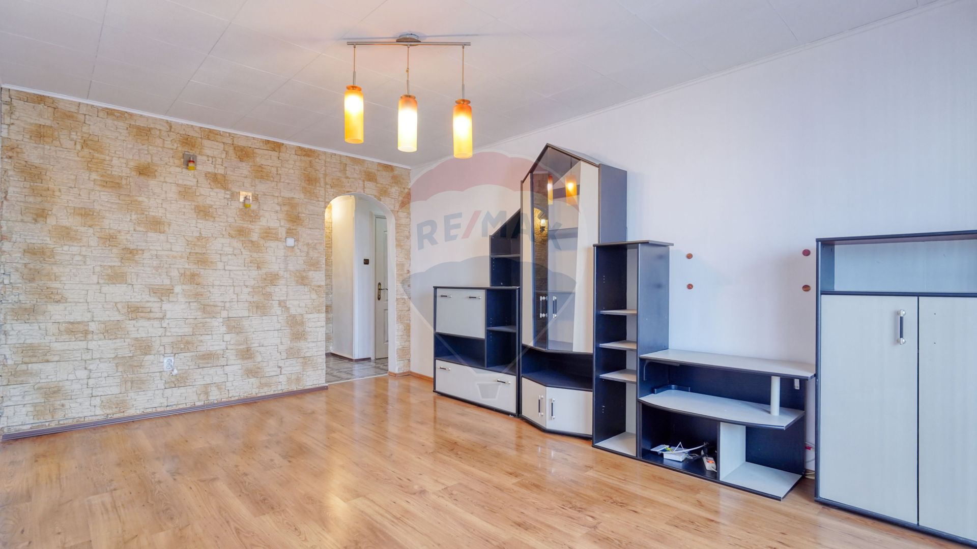 Configurarea este urmatoarea: hol de intrare; un mic grup sanitar transformat in spatiu de depozitare, dar pe care il puteti modifica, o bucătărie mobilata si utilata cu frigider, plita Zanussi, cuptor Zanussi, hota, plus mobilierul aferent, living spatios cu iesire in balcon, 2 dormitoare mobilate si utilate, un mic hol inainte de a intra in baia mare care este dotata cu cada.