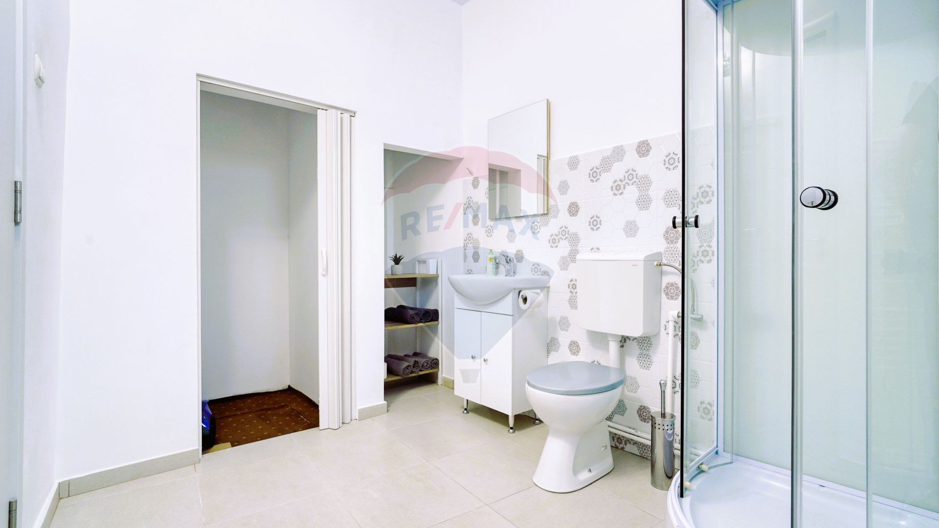 Baia are și ea o suprafață mare, de peste 6 mp utili și beneficiază de geam, avand și o zonă de depozitare cu cces spre pivnița aferentă apartamentului.