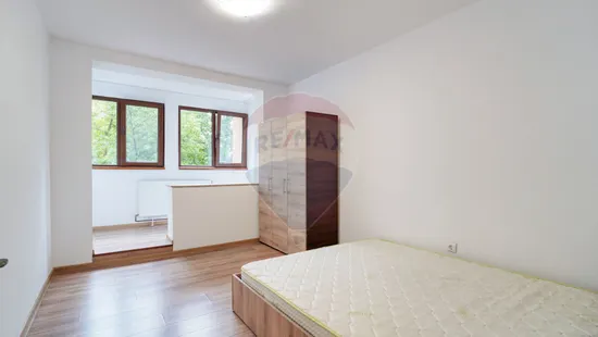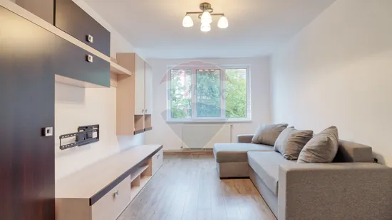 Apartamentul este mobilat si utilat minimalist, nefiind foarte incarcat, viitorii chiriesi vor avea destul spatiu in caz ca vor mai dori sa completeze locatia cu un birou, sau o alta piesa de mobilier.