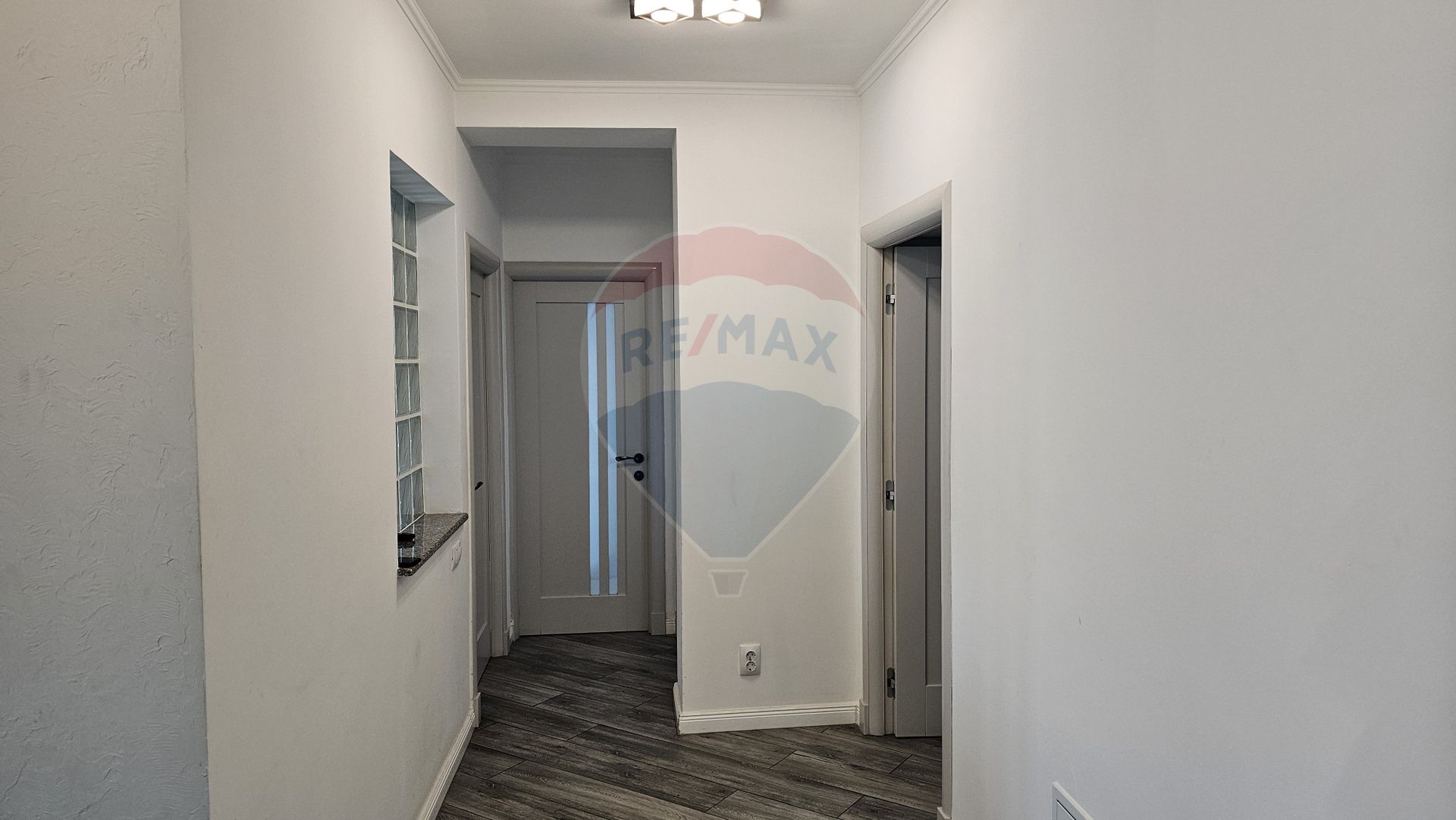 Ușa de la intrare este din PVC-Metal.