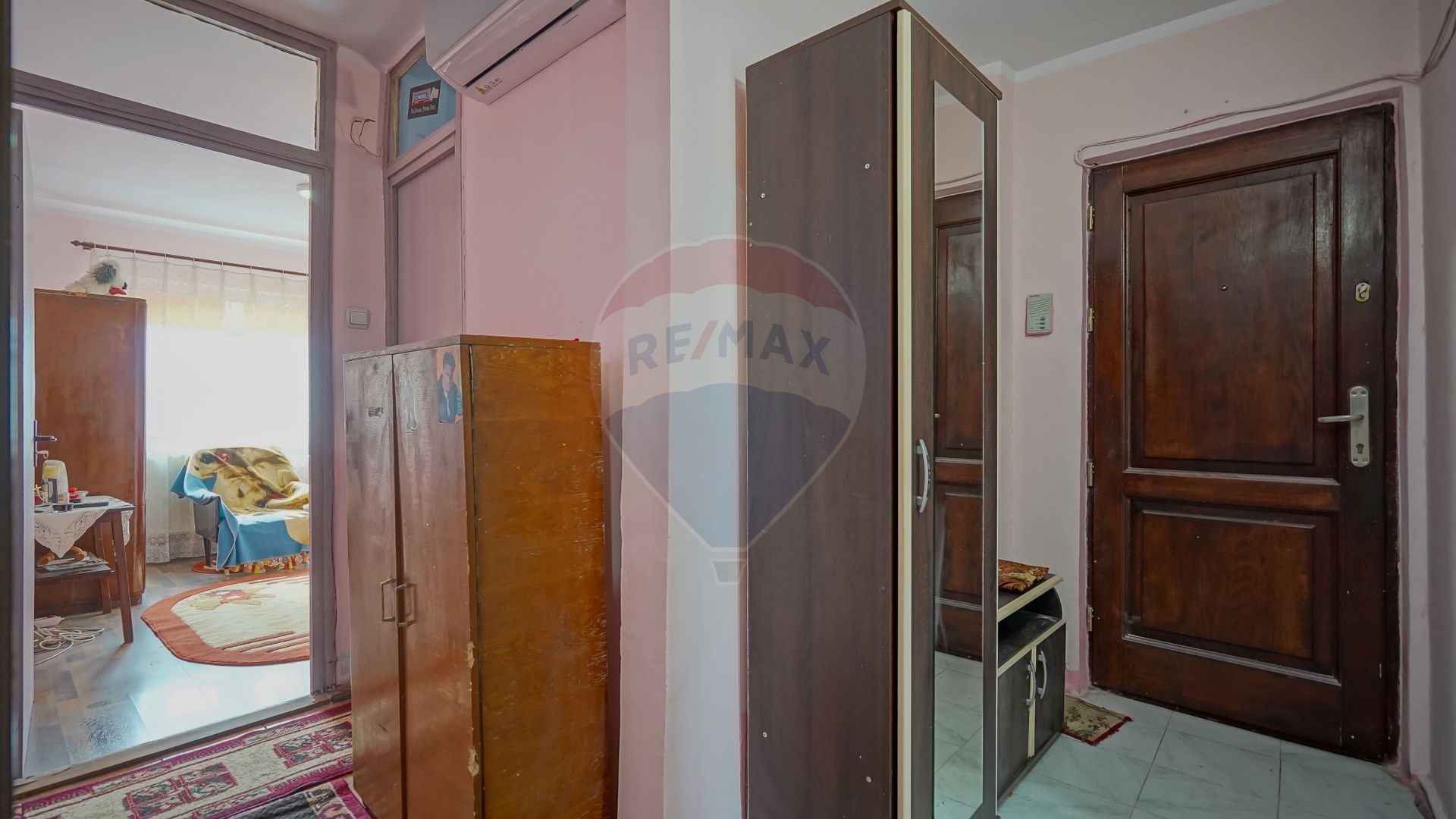 Este vorba de un apartament de 3 camere, cu două băi 64 metri pătrați în total, la care se adaugă 2 balcoane a câte 3 metri pătrați fiecare. Pe lângă avantajul oferit de priveliște, apartamentul se prezintă într-o stare rezonabilă, fără infiltrații sau mucegai, fiind un punct de plecare solid pentru viitorul proprietar. Apropo blocul a fost construit în 1981.