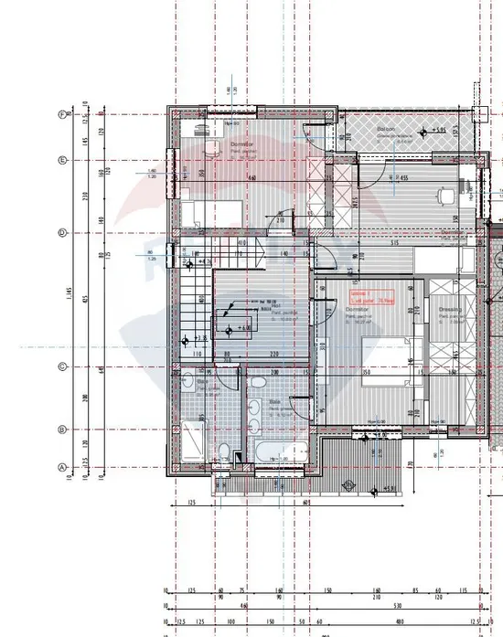 La Etaj avem 3 dormitoare, unul cu dressing și baie proprie, iar celelalte 2 dormitoare având dressing și baie comune cu acces din hol.