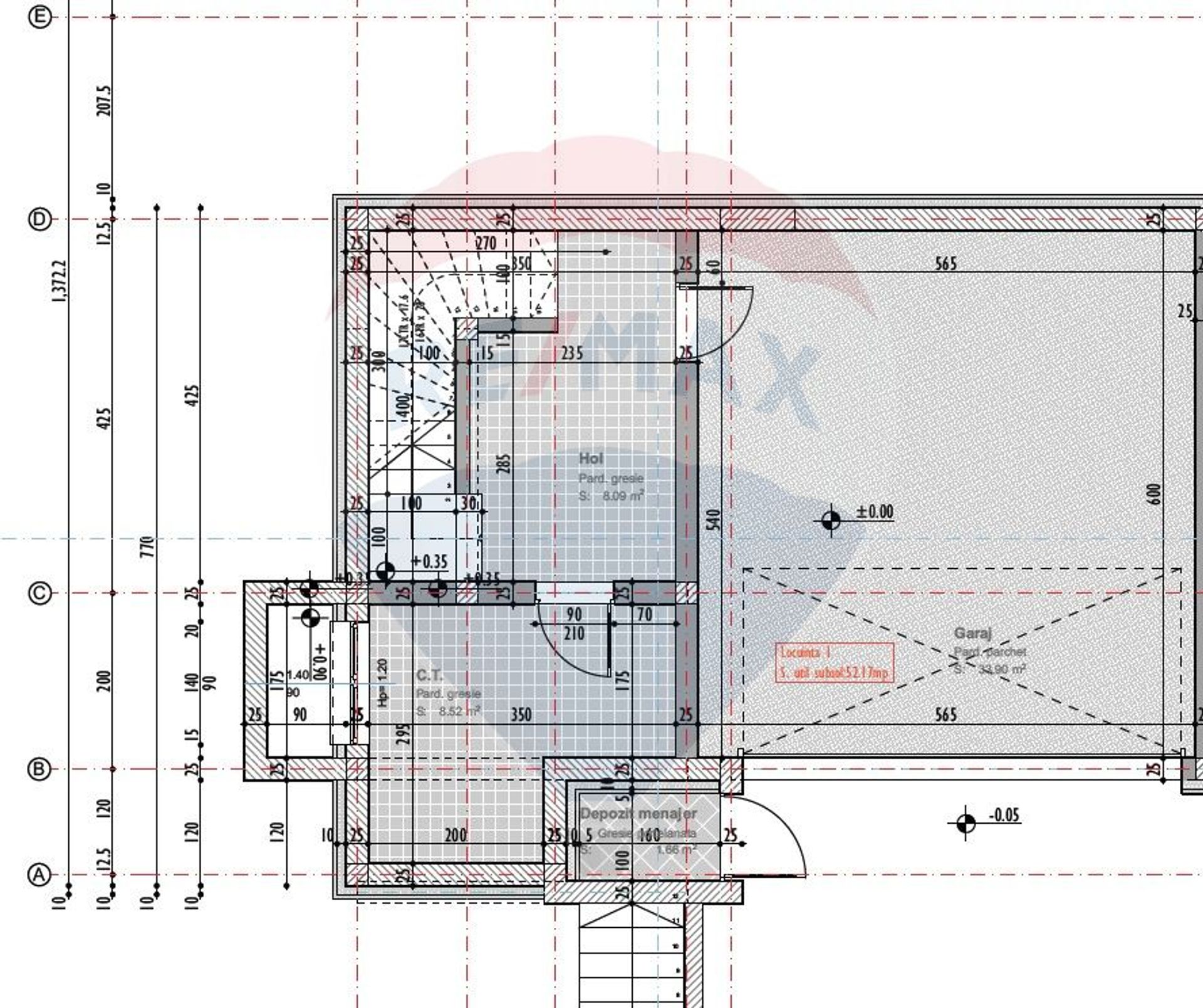 La Demisol construcția dispune de un garaj generos de 50 MP, o camera tehnică și casa scării.