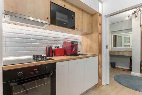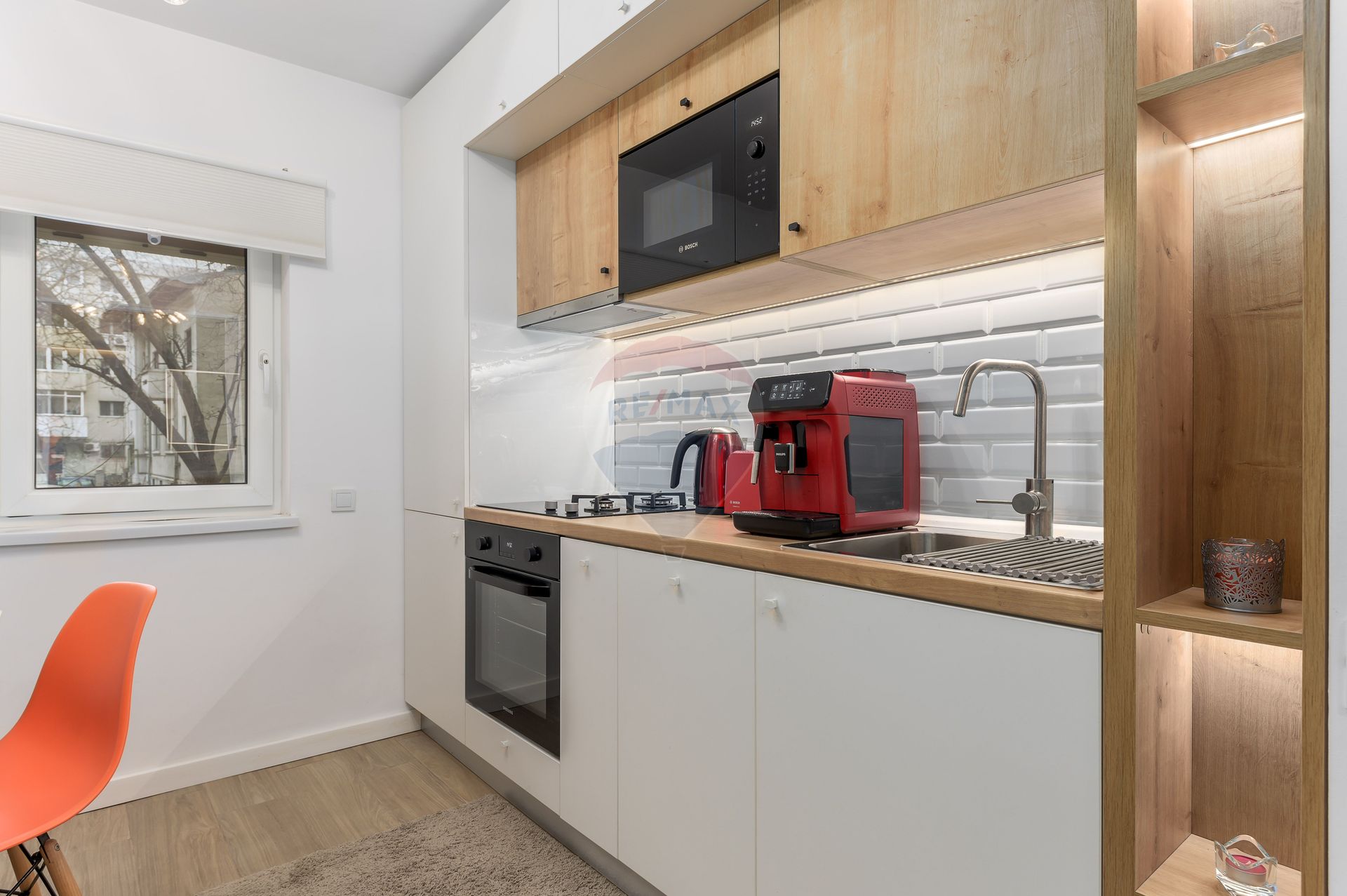 Bucătărie utilată complet, dotată cu electrocasnice moderne.