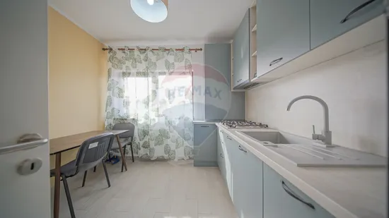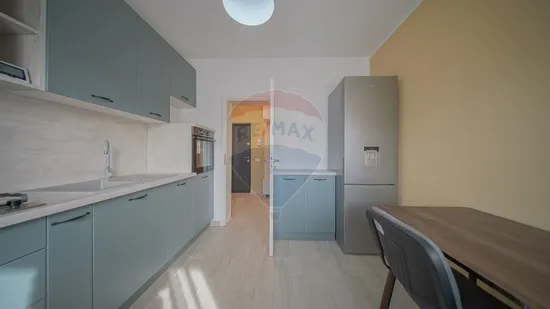 Apartamentul dispune de o suprafață utilă de 53 mp și este compartimentat inteligent în două camere luminoase: un living spațios cu canapea extensibilă și acces direct pe balcon, perfect pentru momentele de relaxare, și un dormitor confortabil. Bucătăria este separată, complet mobilată și echipată cu electrocasnice moderne, inclusiv mașină de spălat vase.