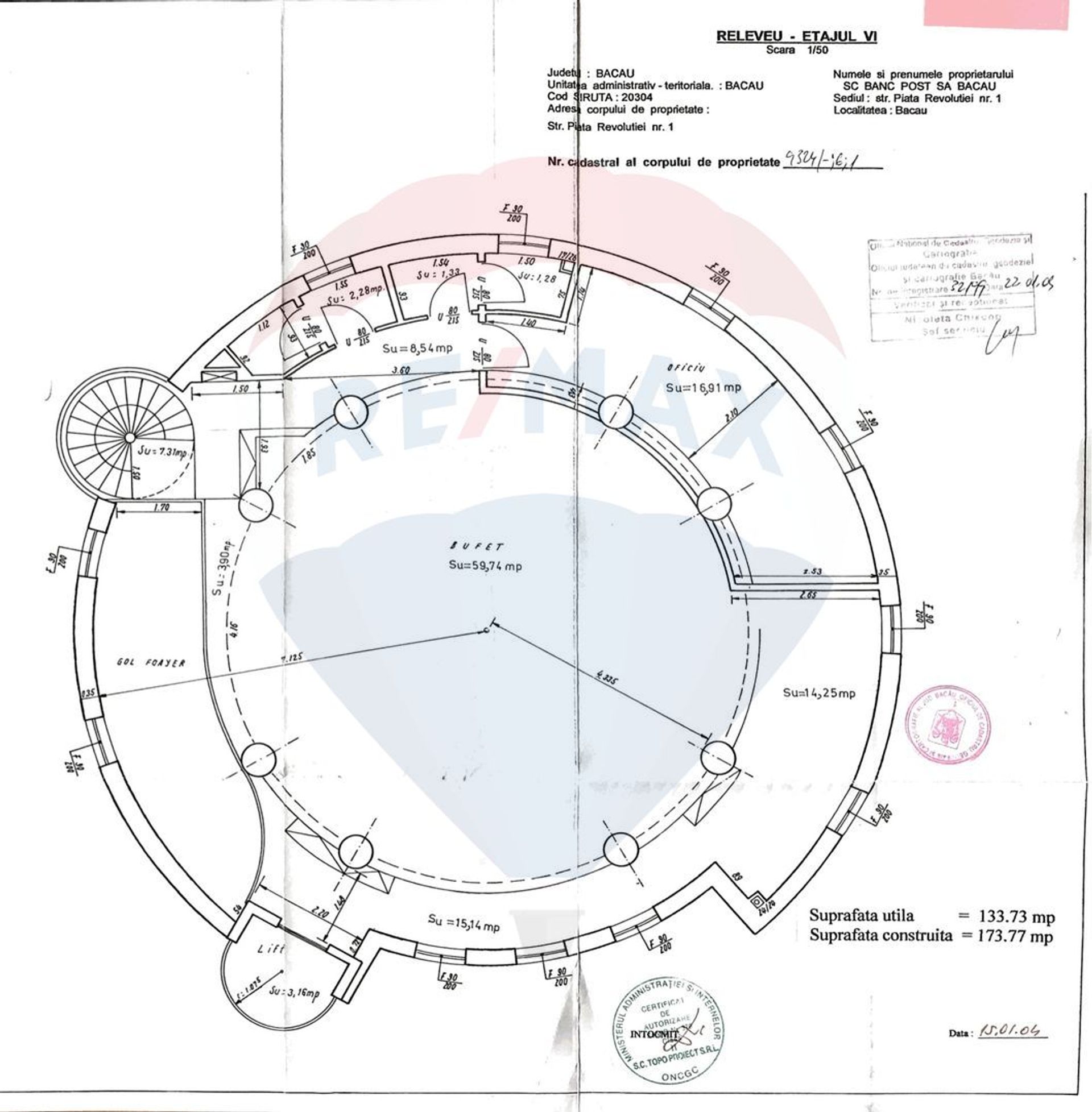 Suprafața utilă este de 134 mp repartizați printr-o încăpere open space, un birou separat și 2 grupuri sanitare (doar pentru cei aflați la etajul 6).
