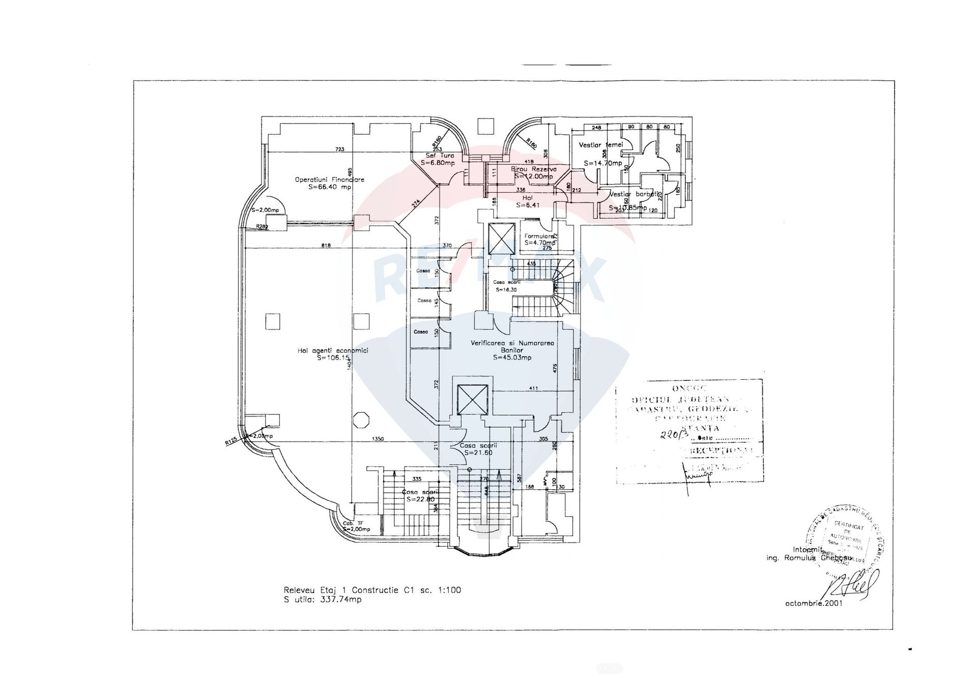 Compartimentare funcțională: spațiul este organizat în mai multe încăperi, inclusiv birouri, grupuri sanitare, vestiare, holuri, oferind flexibilitate în configurarea mediului de lucru.