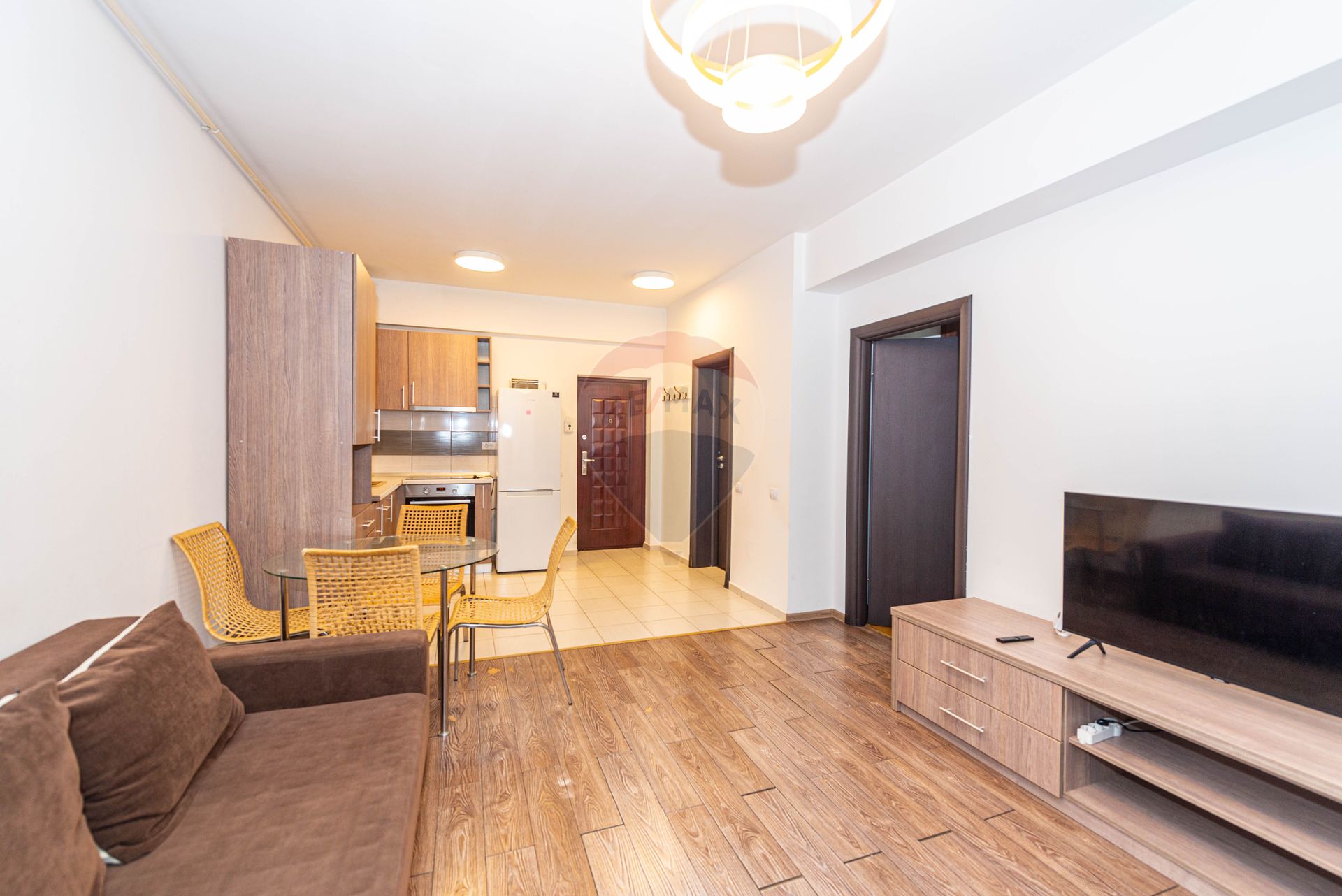 Dotarile includ centrala termica proprie, calorifere, aer conditionat, usa metalica la intrare, ferestre din PVC si pereti finisati cu vopsea lavabila si faianta. Pardoseala este acoperita cu gresie si parchet, oferind un aspect modern si elegant. Electrocasnicele sunt incluse si cuprind aragaz, frigider, masina de spalat rufe, hota si televizor.