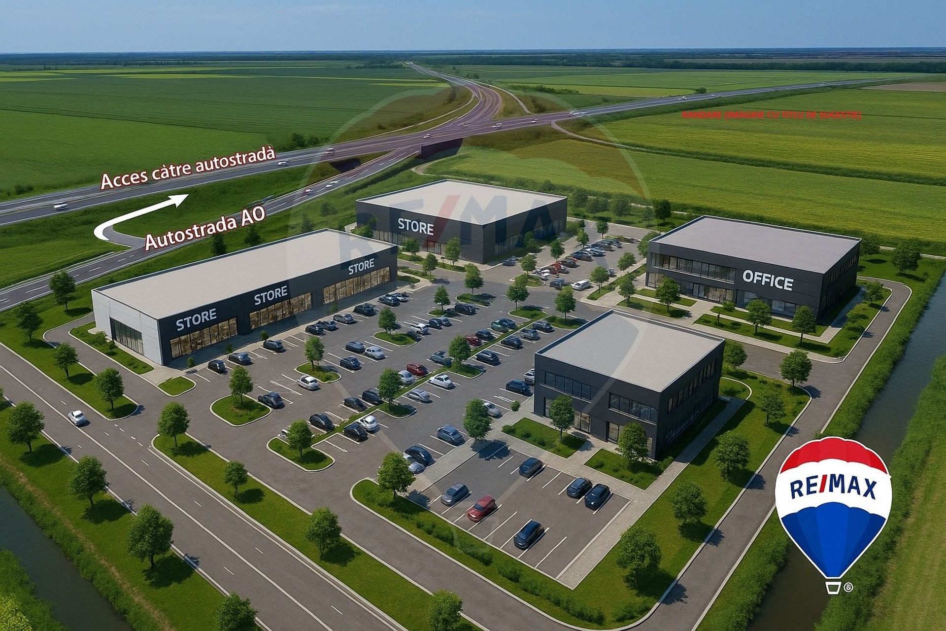 Acces: Drum de pământ (existent), în proximitatea autostrăzilor A0 și A2