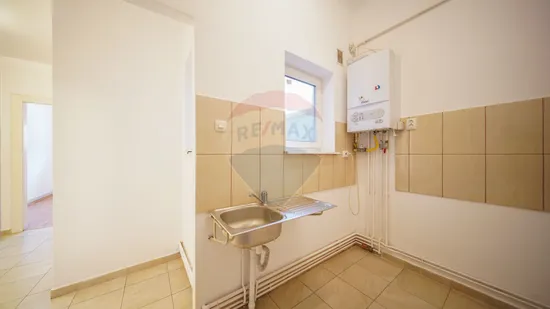 - Bucătăria care permite amenajarea unui colț de gătit funcțional, ideal pentru prepararea meselor.