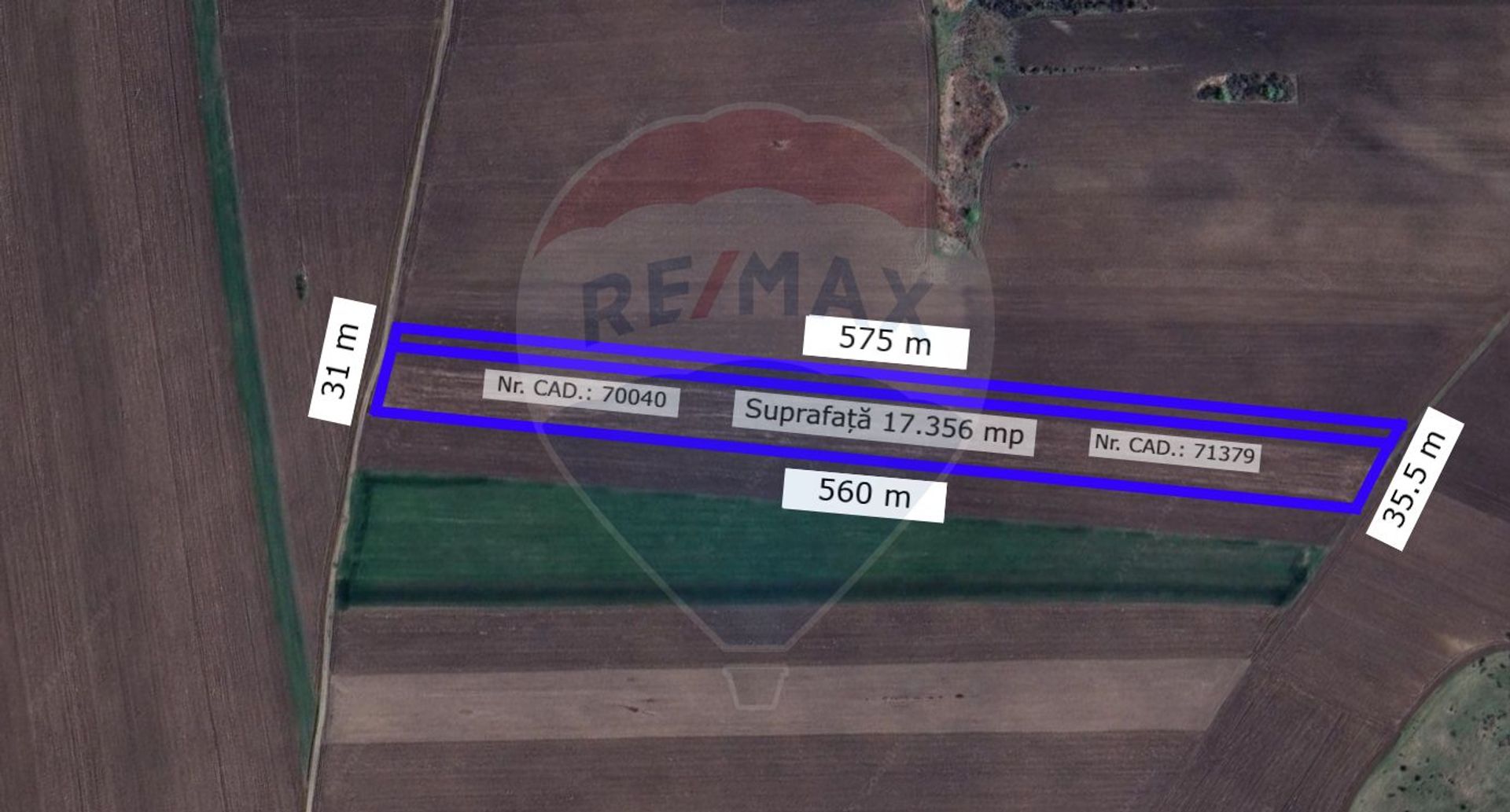 Este format din două parcele alăturate de 1.5Ha respectiv 2.356mp cu o lățime medie de 33 metri.