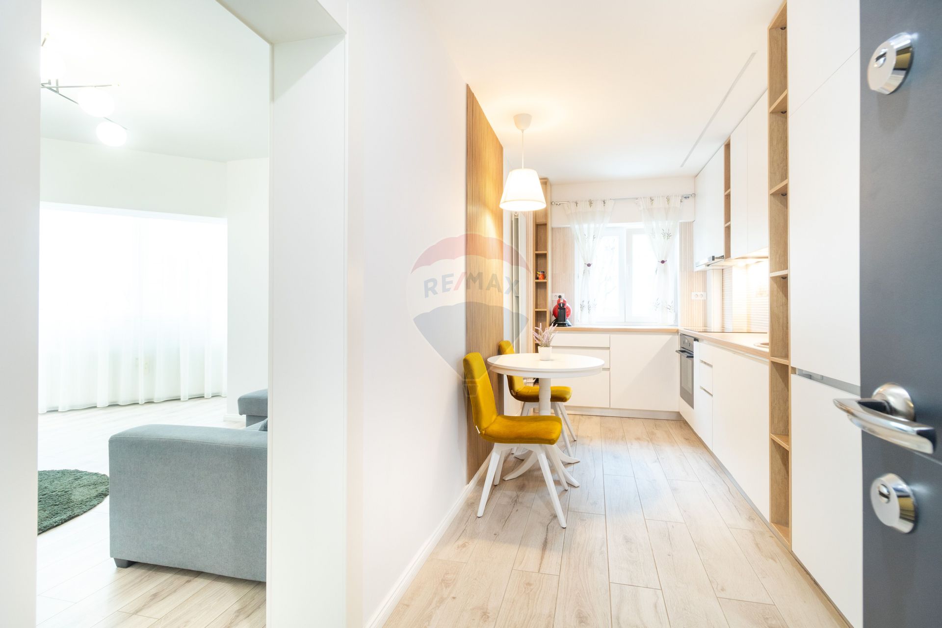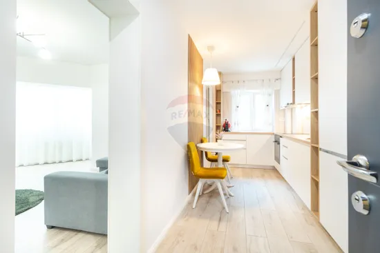 Va propun spre inchiriere un apartament superb, cu totul nou, amenajat cu bun gust, atentie la detalii si adaptat la nevoile actuale de trai. Este compus din hol si bucatarie, amenajate intr-o unitate stilistica si functionala, mobilerul fiind facut integral pe comanda pentru a eficentiza cat mai mult spatiul. Include un dressing generos cu oglinzi pe toata inaltimea care ofera un plus de eleganta dar si deschidere spatiului, combina frigorifica incorporata, masina de spalat vase, plita si cuptor electrice - toate marca Electrolux, hota Pyramis, espressor cu capsule Nescafe Doce Gusto KRUPS.