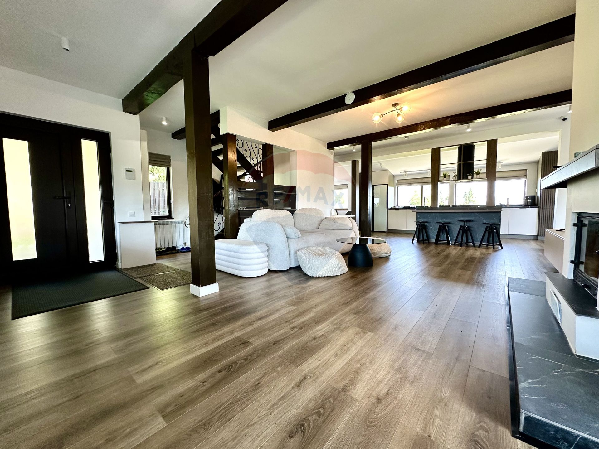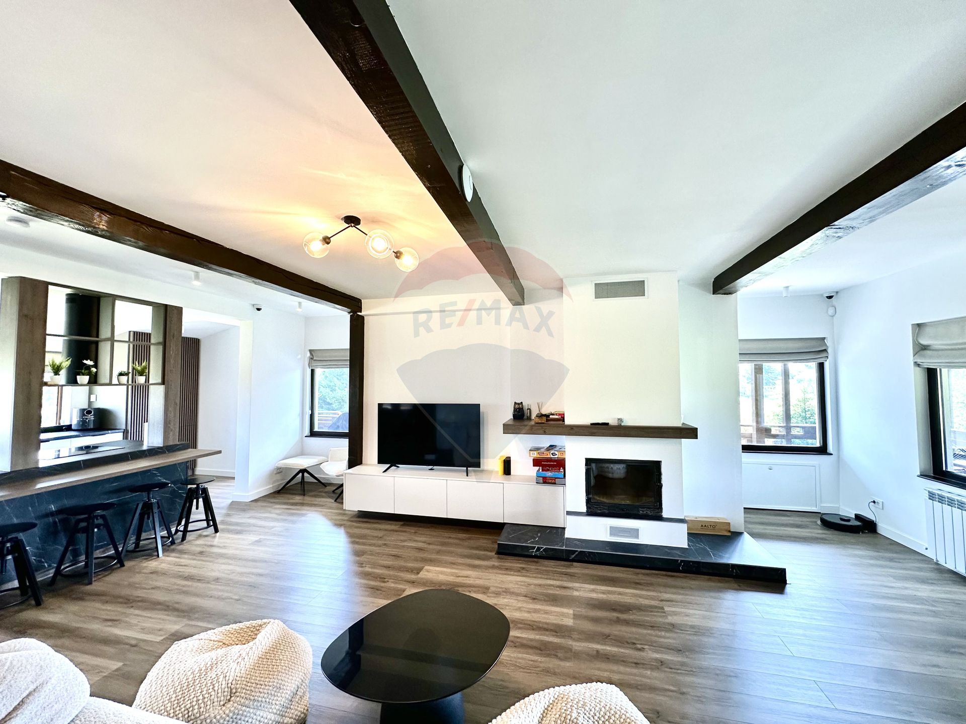 Dotări: Aer condiționat, Aragaz, Frigider, Mașină de spălat vase, Scară interioară, Șemineu, TV