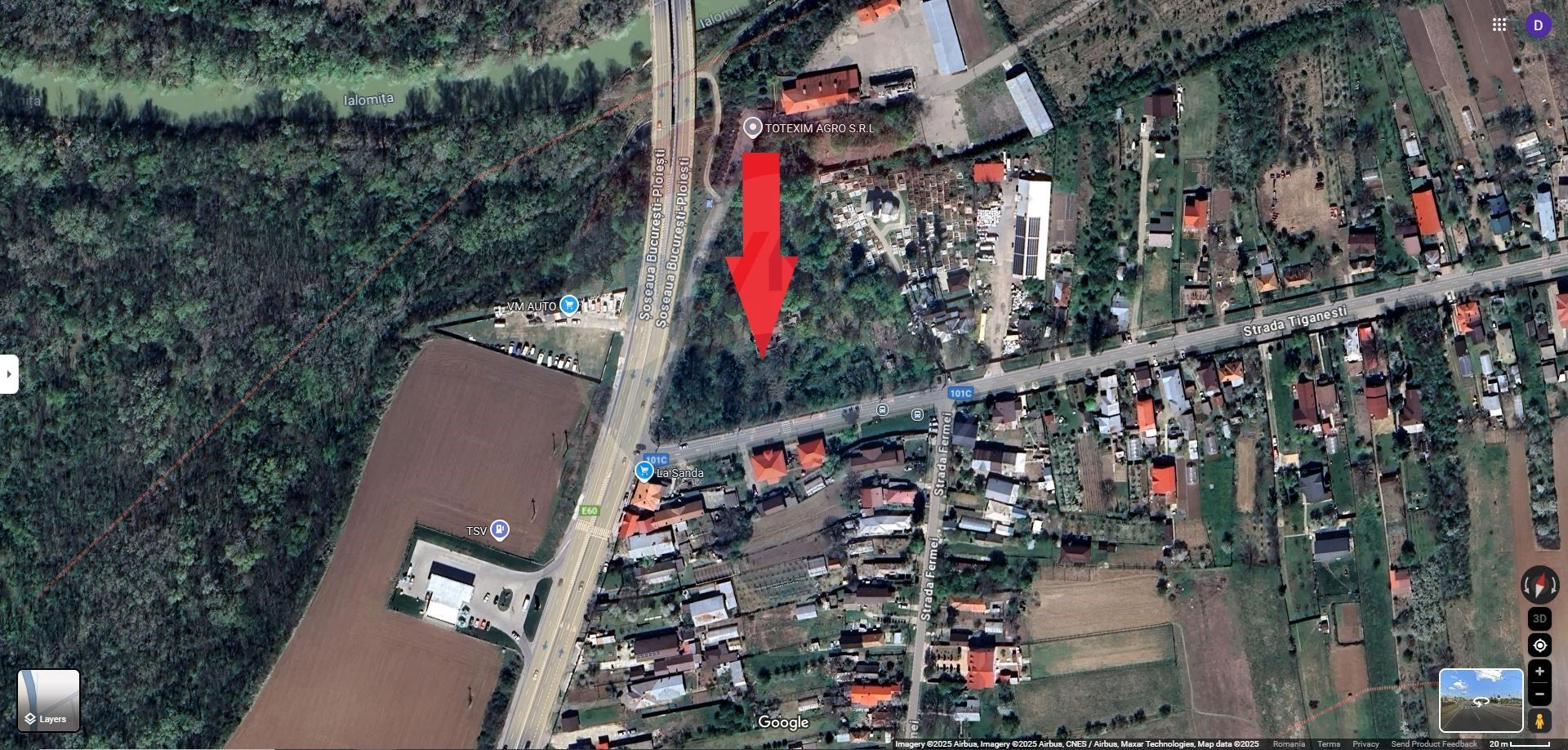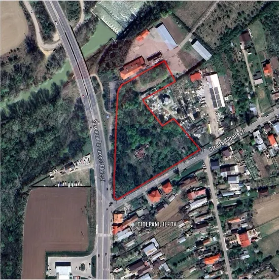 Vă propunem spre vânzare un teren generos situat în localitatea Ciolpani, județ Ilfov, vizavi de benzinaria TSV, cu suprafața de 14.165 mp și cu două deschideri de 130 ml la DN1 (Drumul Național 1) respectiv de 140 ml la Strada Țigănești.