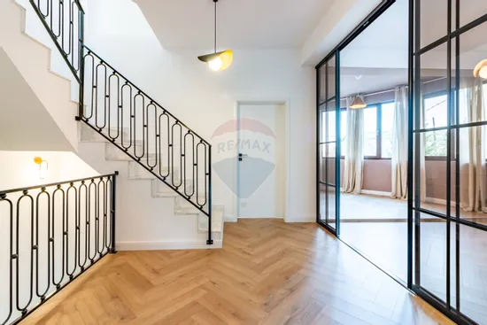 Casa moderna pe trei nivele care ofera o combinatie perfecta intre confort si eleganta, cu tavane inalte 3,1 m si suprafete generoase.