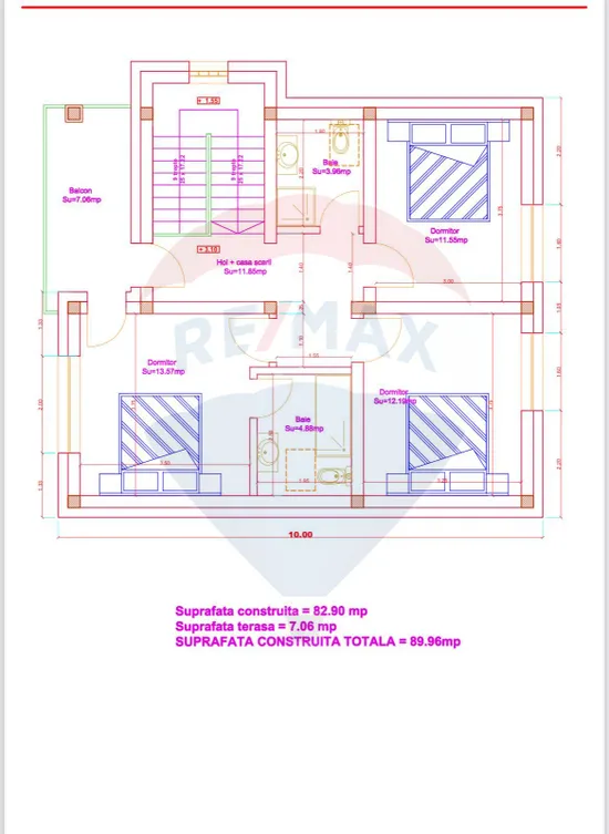 3 dormitoare (dormitorul matrimonial cu baie si balcon propriu)