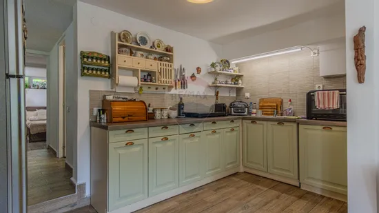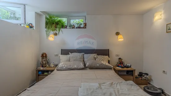 - Parterul este amenajat ca un apartament complet – cu bucătărie, living, baie și dormitor.