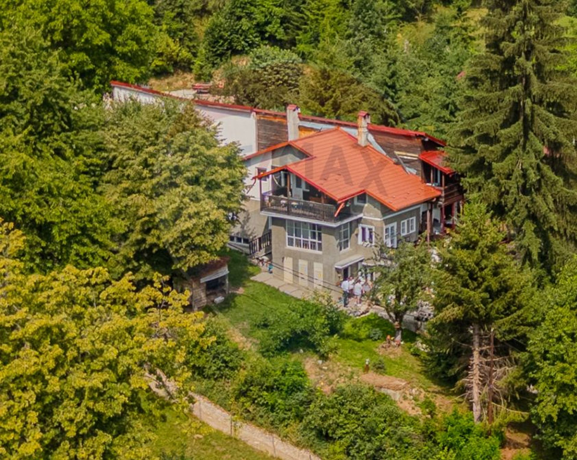 În curte regăsim aproximativ 30 de pomi fructiferi, 3 locuri de parcare, precum și două unități suplimentare din lemn:
