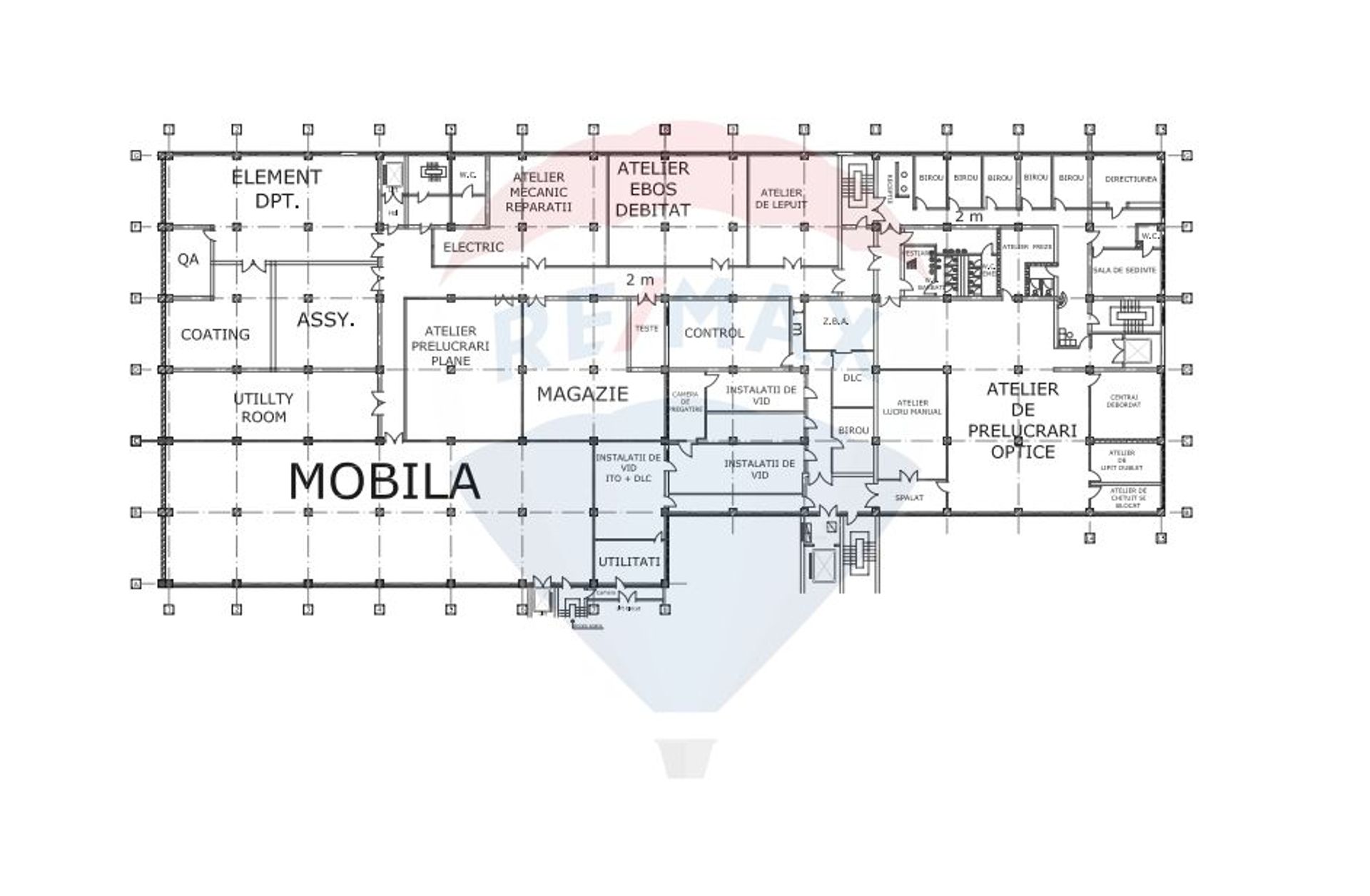 Logistică eficientă: 2 lifturi pentru marfă, facilitând transportul intern al materialelor și produselor.