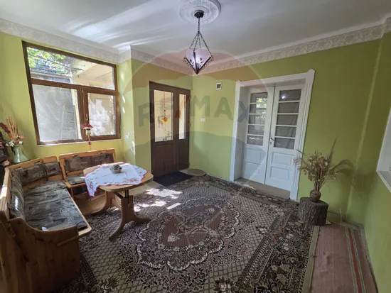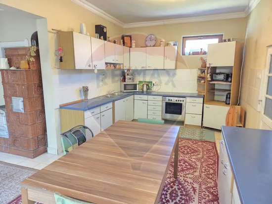 va prezint o casa spatioasa si luminoasa construita din caramida cu fundatie inalta de piatra formata din 3 dormitoare mari , o bucatarie spatioasa din care se face acces intr_o camara de alimente , un living spatios si luminos , o baie cu vana plus doua camere pe post de anexe magazie si bucatarie de vara ,
