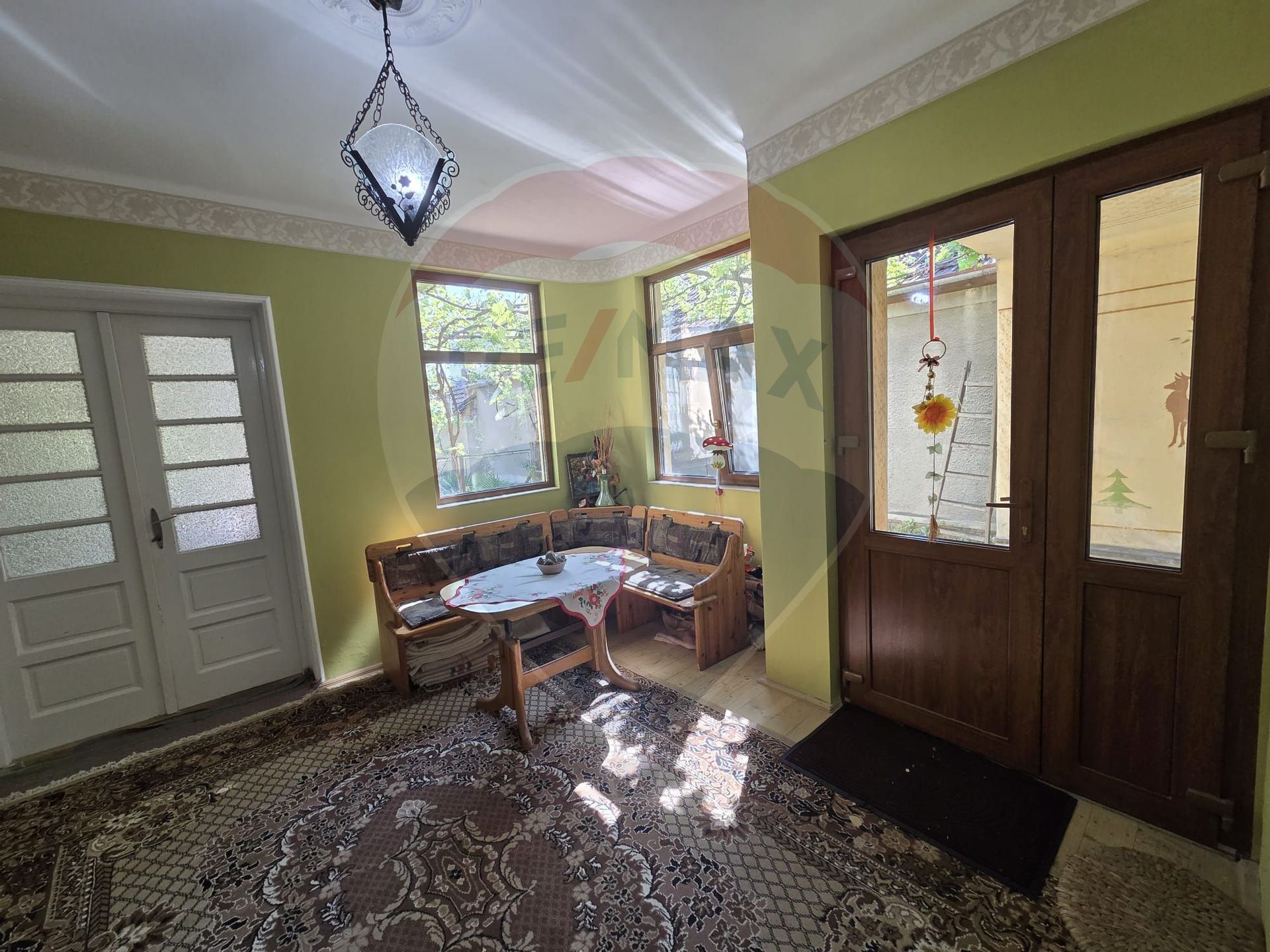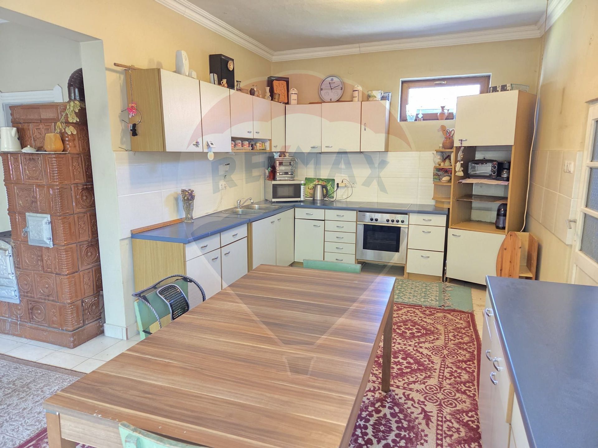 Casa dispune de geamuri si usi termopan recent montate , pe culoarea maro,,rolete de protectie si umbrire pe aceasi culoare , incalzirea se face cu sobe de teracota , este racordata la reteaua de apa si canalizare a orasului , se vinde utilata si mobilata conform fotografiilor din anunt .