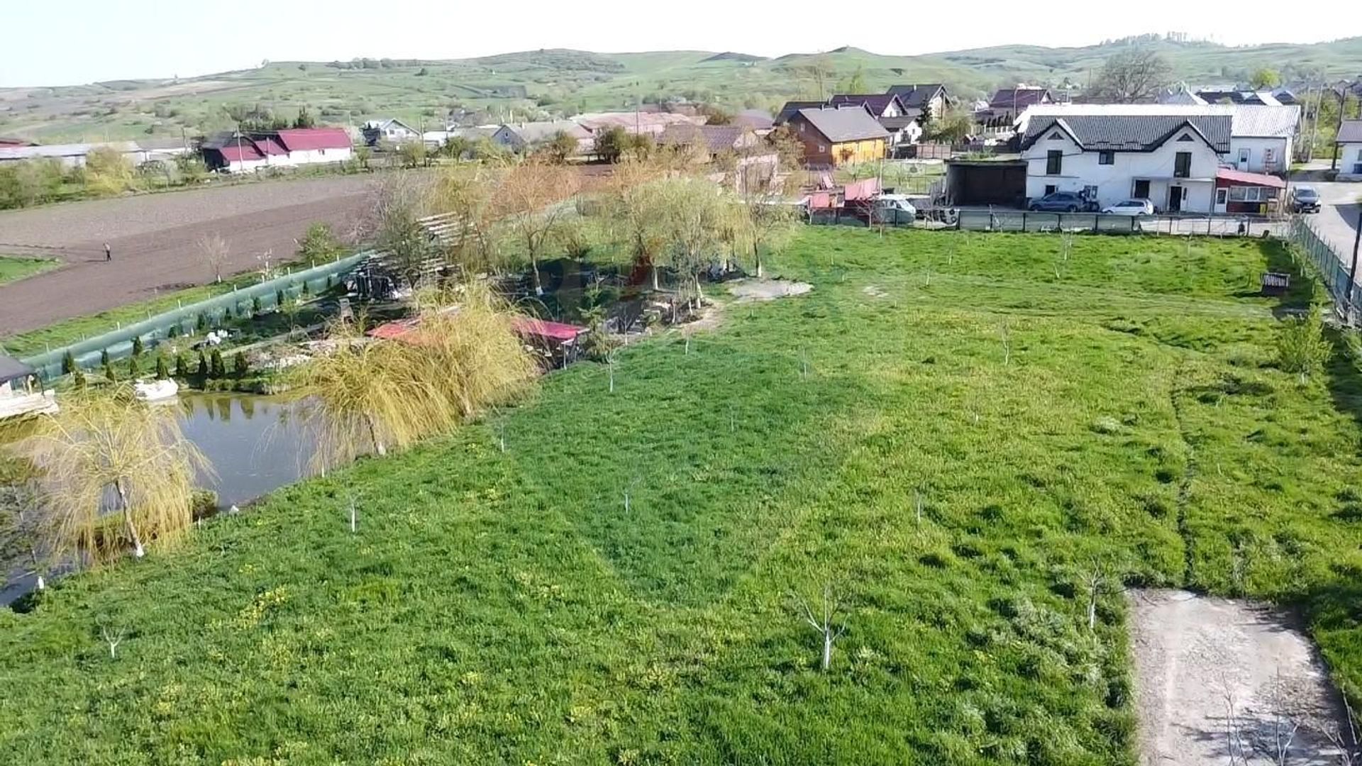 Cu o suprafață totală de 5174 mp, terenul include un iaz amenajat de aproximativ 1000 mp, completat de un ponton rustic și două camere cu băi proprii, construite pe piloni – ideal pentru relaxare, agrement sau chiar dezvoltări turistice.