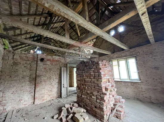 -C1 corp de casa cu o amprenta la sol de 102 mp, construita pe fundatie de piatra, pereti din caramida, barne de lemn, acoperis de tigla, care necesita renovare totala.