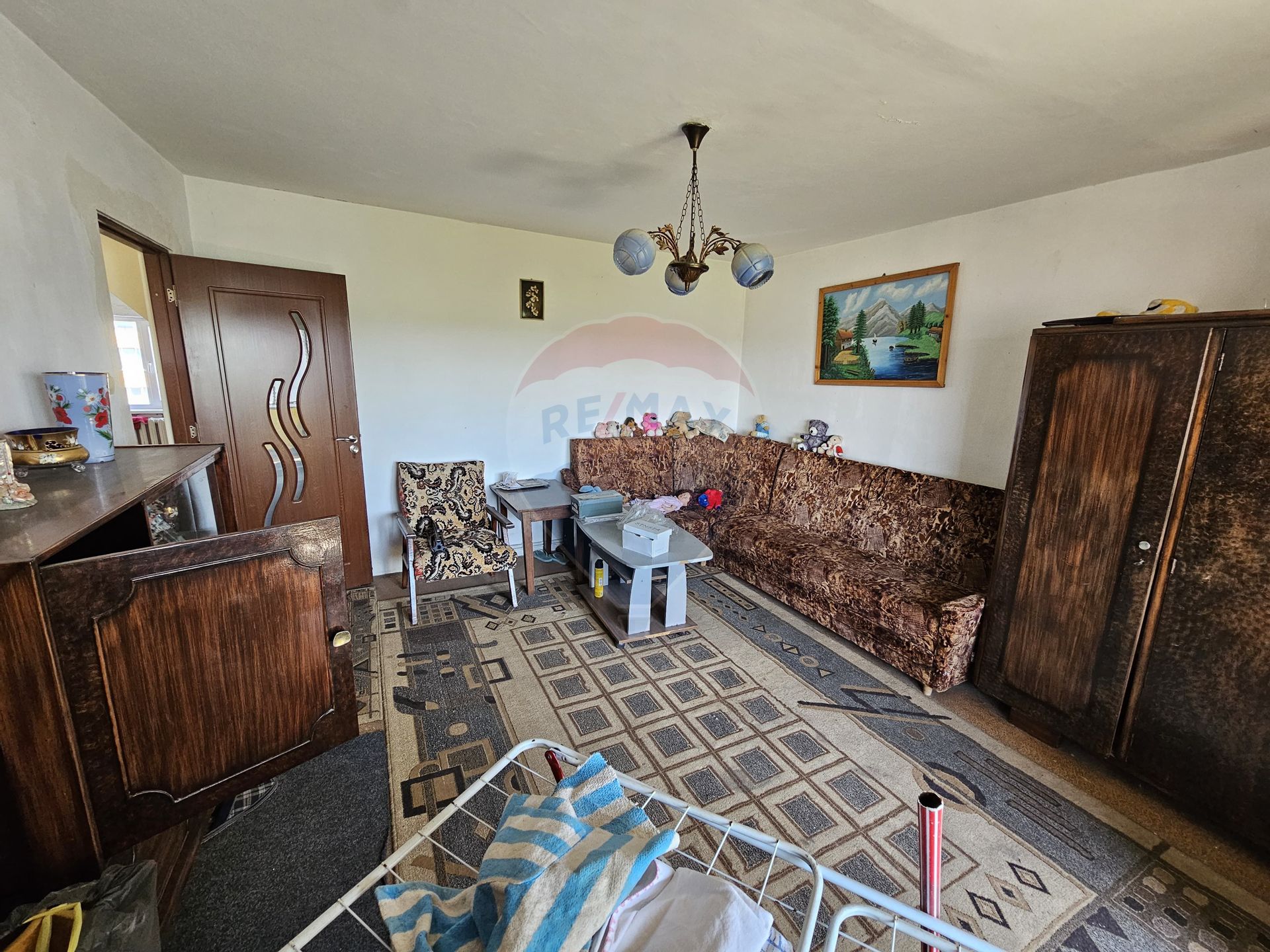 Interiorul necesită renovare, lăsându-vă libertatea de a amenaja fiecare colț după gustul propriu. În plus, este dotat cu centrală termică pe gaz și beneficiază de uși interioare și ferestre termopan noi și calitative, iar instalațiile electrice au fost schimbate.