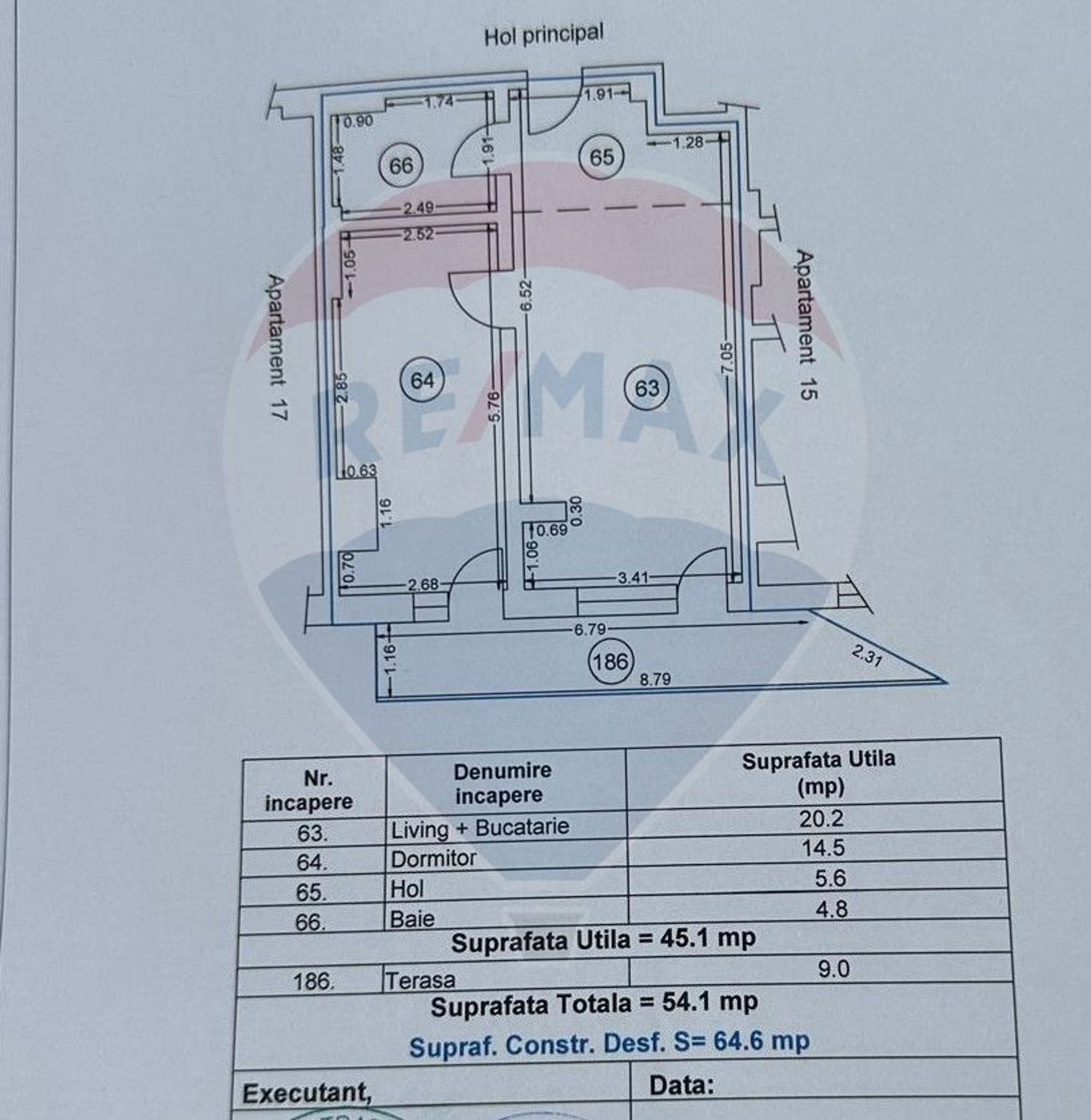 • Suprafaţă utilă: 54 mp