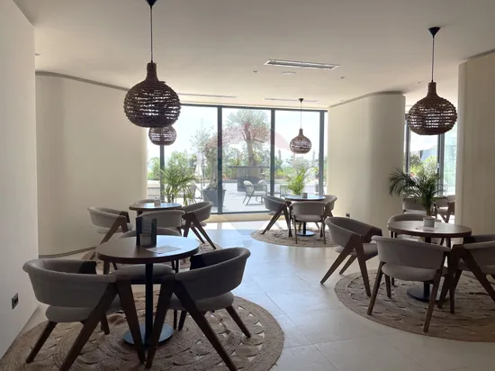 Terasă cu priveliște superbă către piscinele complexului și catre mare,