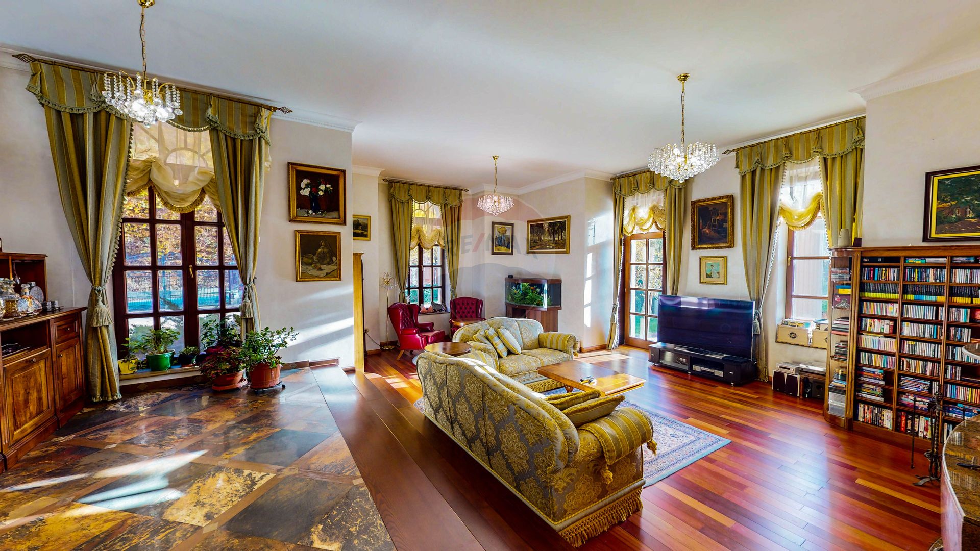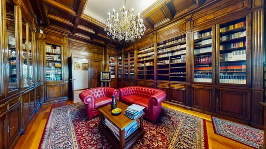 * Bibliotecă cu atmosferă aristocratică, ideală pentru lectură și reflecție.