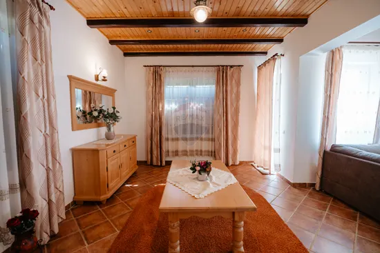 Proprietatea este, structurată pe 3 niveluri (demisol, parter și mansardă), cu o suprafață utilă de aprox. 145 mp și 6 camere, fiind ideală atât ca reședință de vacanță, cât și pentru investiție în turism.