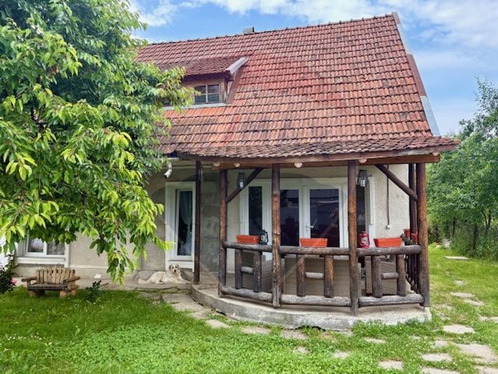 Este poziționată excelent – chiar la drumul principal, aproape de școală, magazine, primărie și mijloace de transport. Curtea oferă o terasă frumoasă în față, iar în spate se află o grădină unde se poate construi sau amenaja după bunul plac.