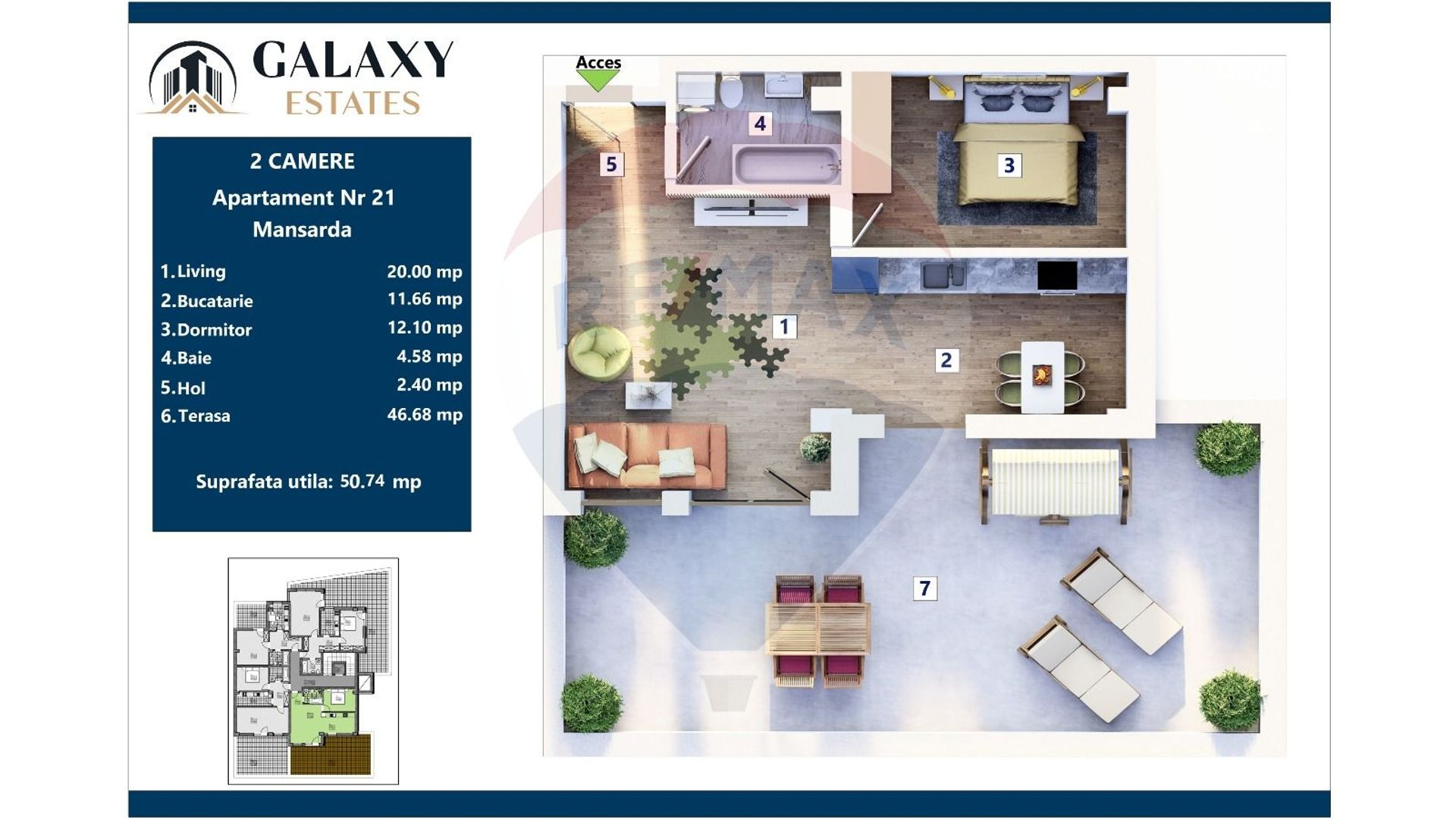 • Suprafaţă utilă: 50.74 mp