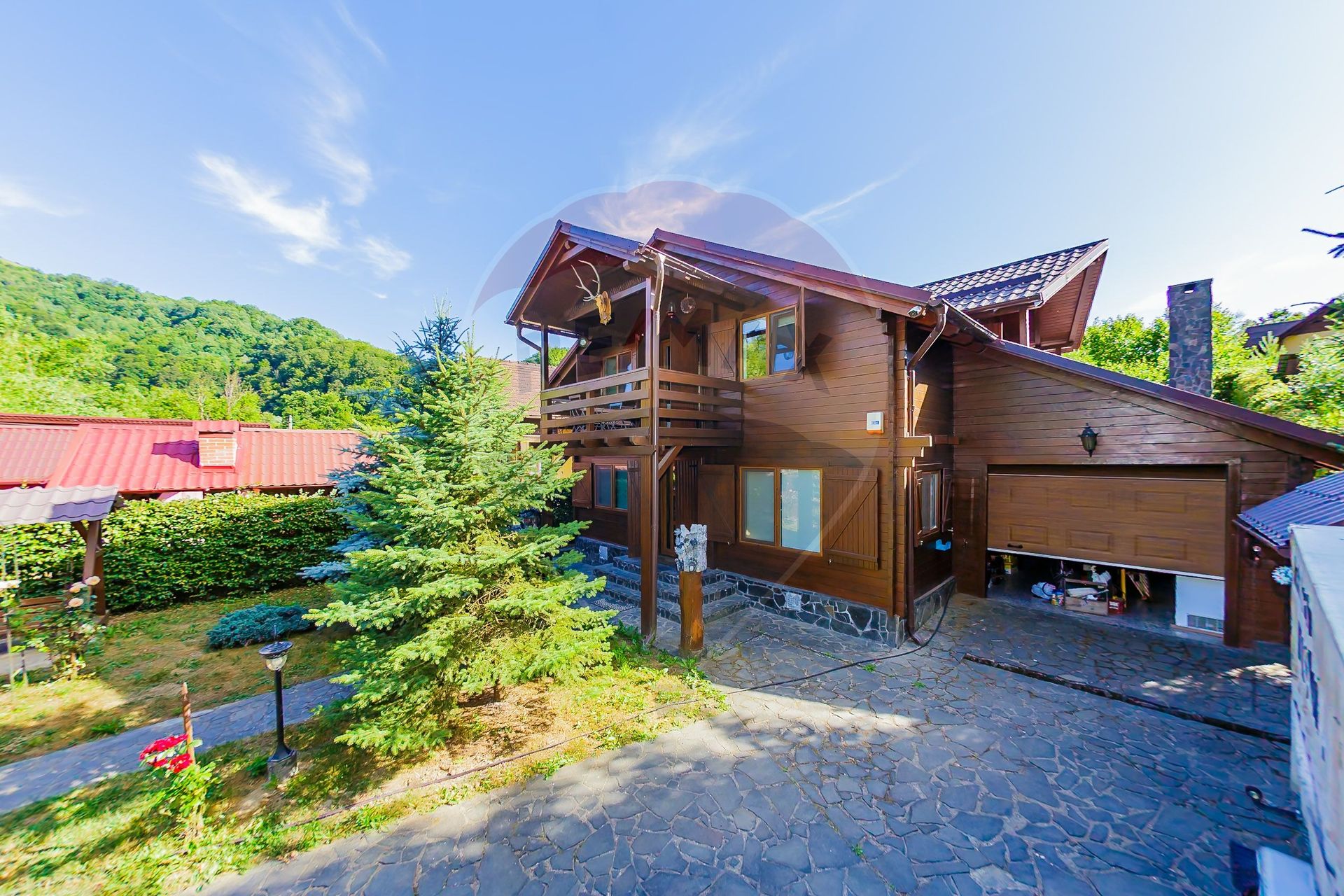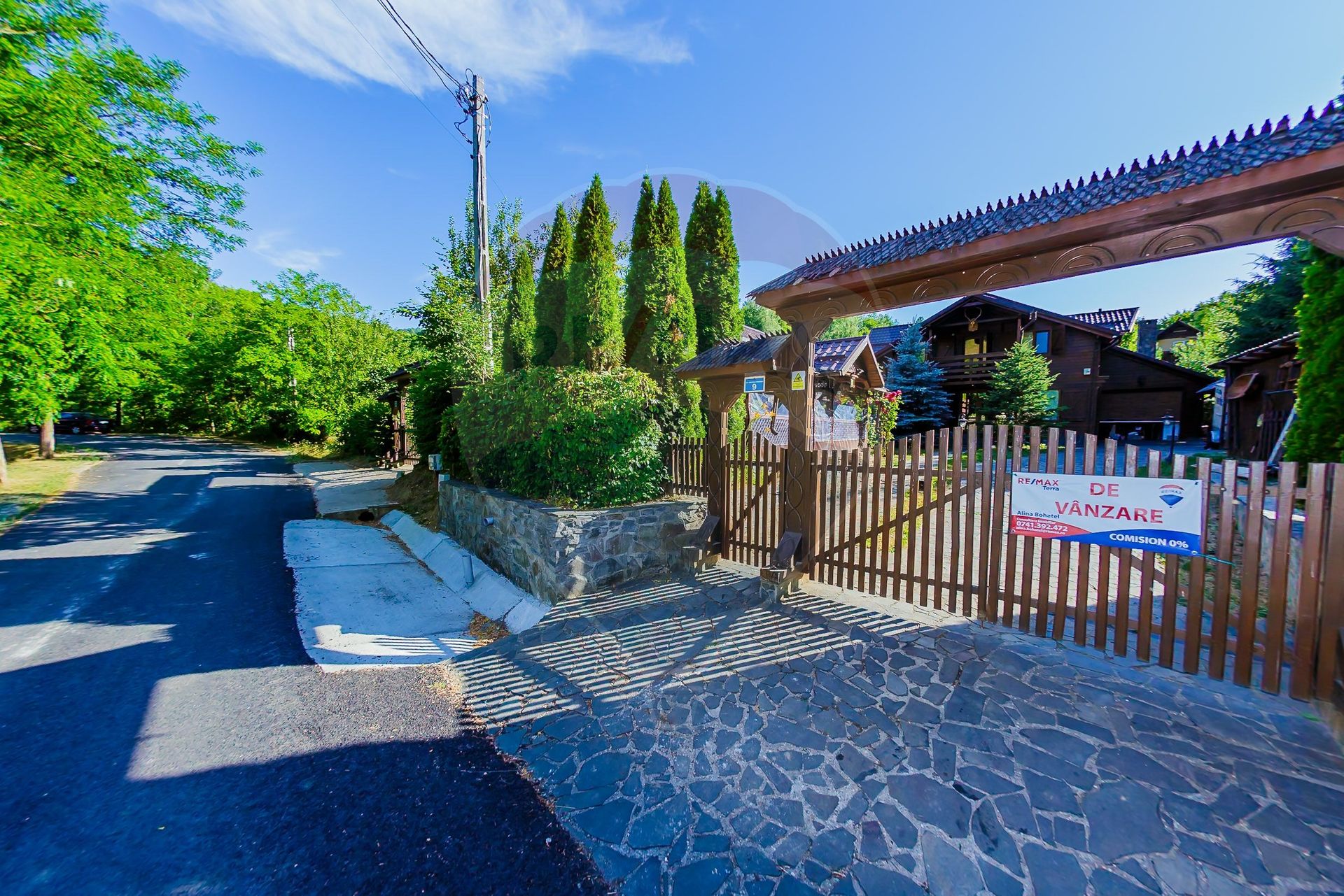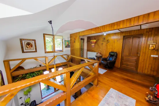 Proprietatea se deosebeste prin designul modern, construcție de lemn cu structură metalică, mobilier si electrocasnice aduse din America, dispune de 4 dormitoare , fiecare cu dressing, living si bucatarie openspace și cămară, 4 băi, 3 balcoane, plus garaj.