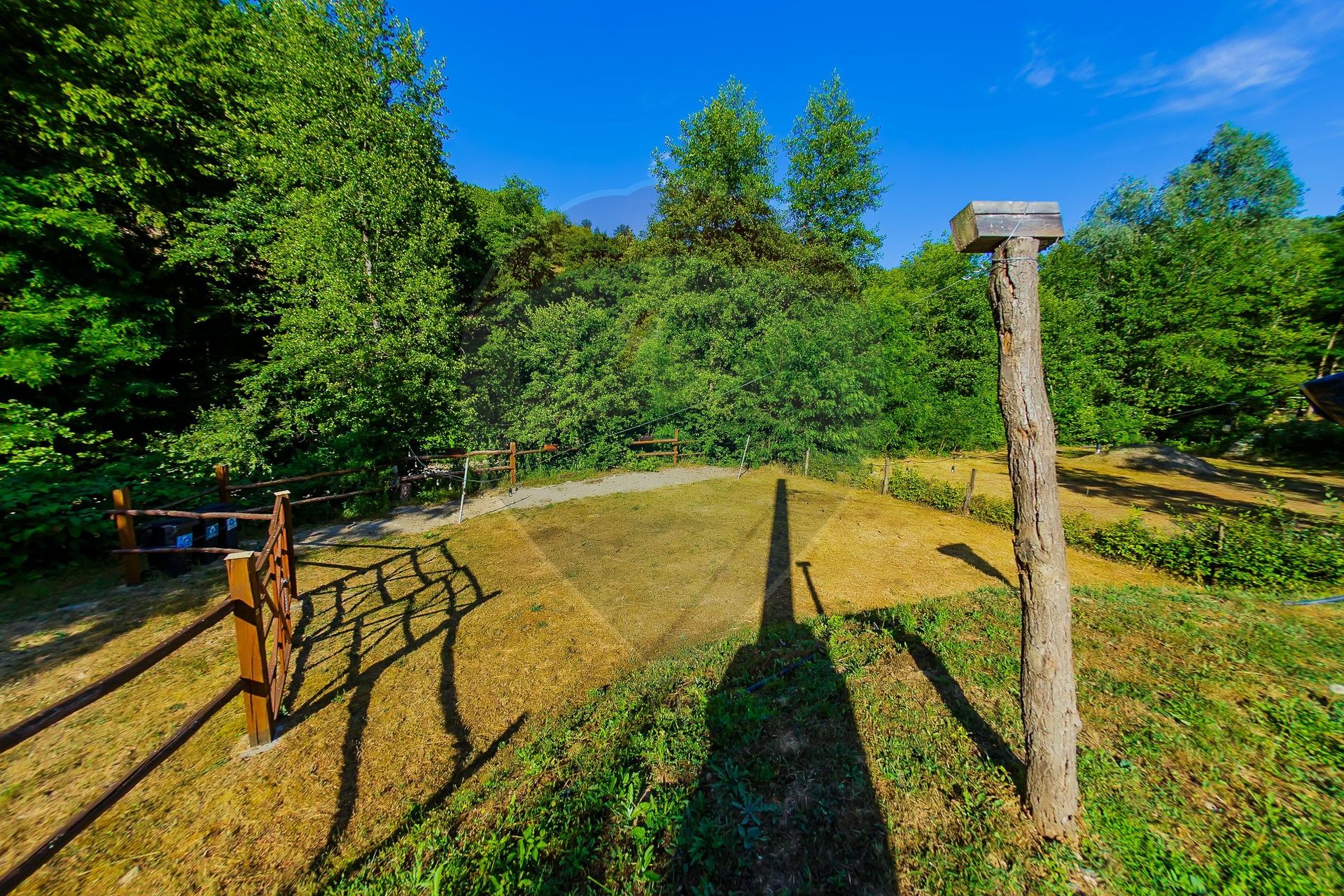 Perimetrul din spatele casei este amenajat cu grădină de pomi fructiferi și WC rustic.