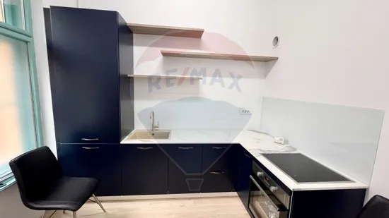 - Bucătărie mica, dar separată, complet echipată cu electrocasnice moderne și mobilă cu design contemporan;