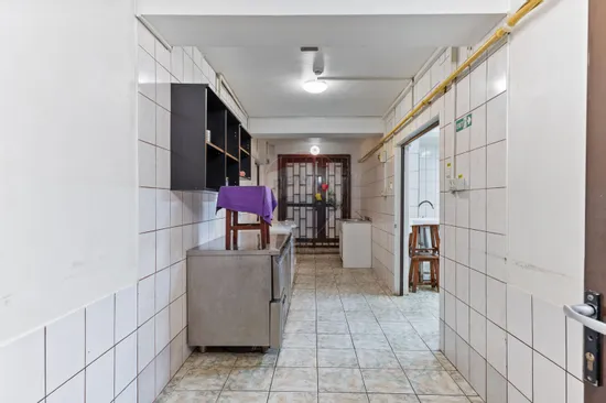 La subsol, găsim tot ce este necesar pentru funcționarea unui restaurant: o bucătărie de aproape 12,4 mp, spații de depozitare, un vestiar, o cameră dedicată pregătirii legumelor, holuri spațioase și nu mai puțin de trei grupuri sanitare separate pentru femei, bărbați și personal. În plus, există o cameră tehnică și un acces auto generos, de 25,3 mp, care sporește funcționalitatea spațiului.